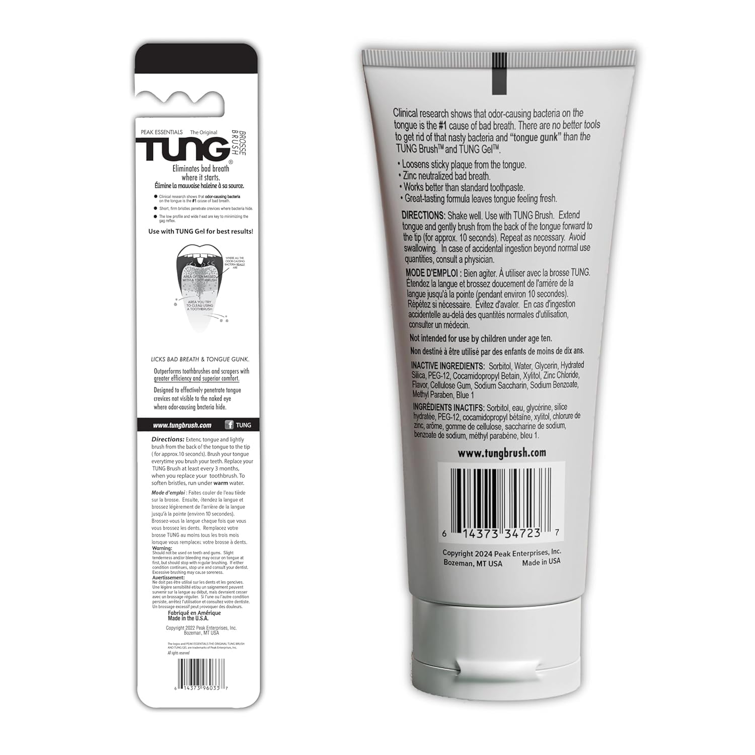 GREAT TASTE: The Original TUNG Gel contains Zinc to neutralize sulfur gas and freshen your breath naturally; it won’t gunk up your toothbrush, which isn’t made for the tongue; this TUNG brush and gel combo works as a gentle mouth sanitizer and effective bad breath odor eliminator, all with a minty clean finish