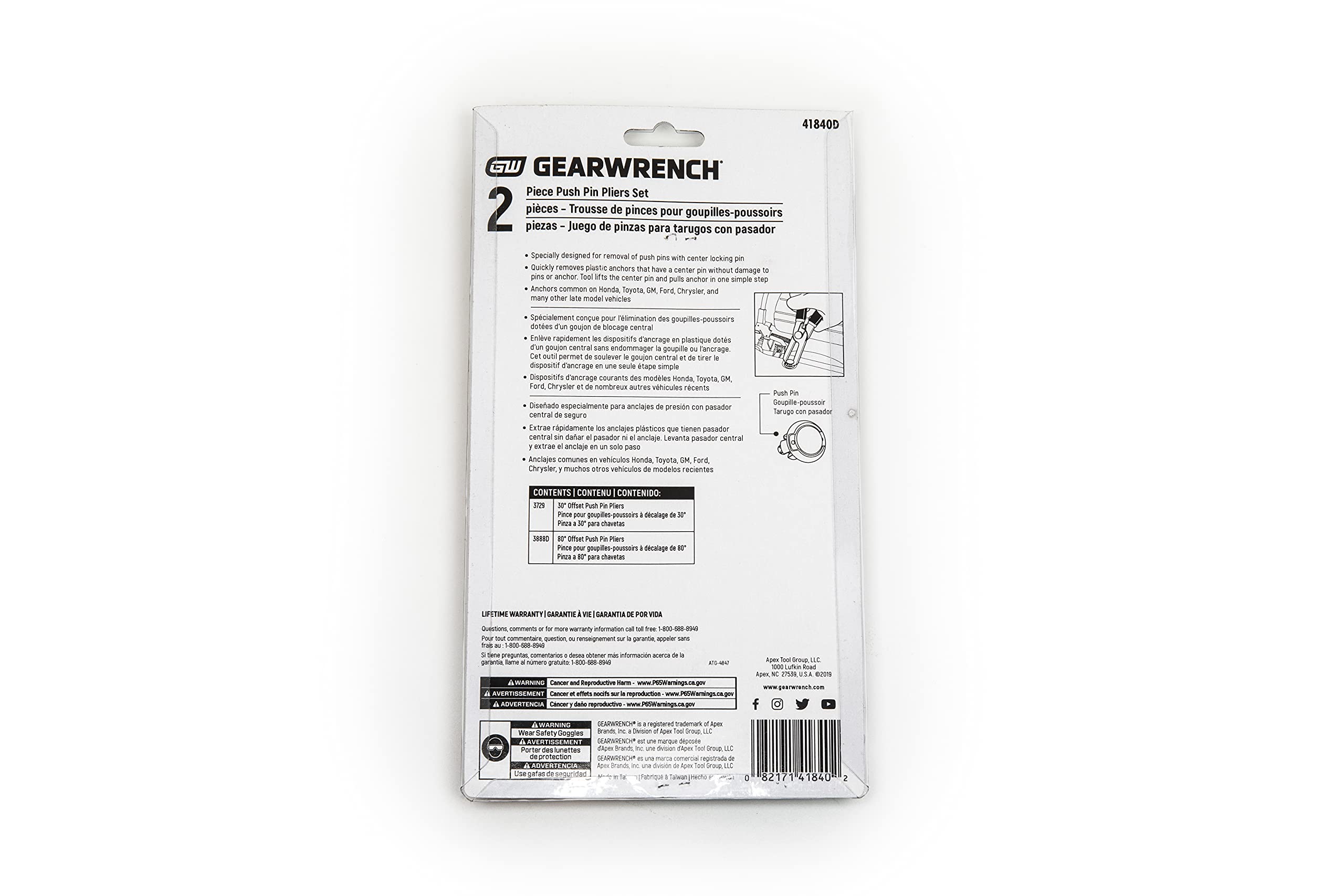 Specially designed for removal of push pins With center locking pin