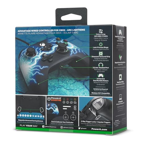 Take your game to new levels with the PowerA Advantage Wired Controller for Xbox Series X|S. Licensed by Xbox, this brilliantly engineered controller features two mappable Advanced Gaming Buttons you can program on-the-fly and 3-Way Trigger Locks for adjusting the trigger travel distance. Plus, all the features you’d expect from an exceptional Xbox controller: Dual Rumble Motors, precision-tuned analog sticks, anti-friction rings for smooth motion and a lightweight ergonomic design. Sit back in comfort with the included extra-long 10ft USB-C cable. With a wired connection, enjoy minimal input-lag and eliminate the need to charge batteries. This controller also works great on Windows 10/11. Play in confidence with a 2-year limited warranty. *Compatibility varies by title.