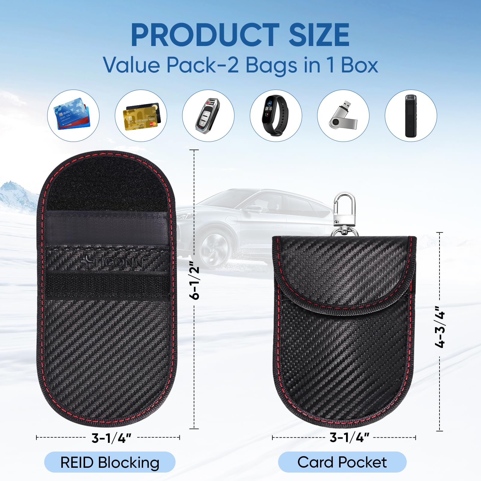 Why You May Need One: Get your car protected; TICONN faraday bag provides a complete signal blocker for your vehicle key fob; This prevents thieves from picking up and relaying signals from your key, to shield against break-ins and keyless ignition theft