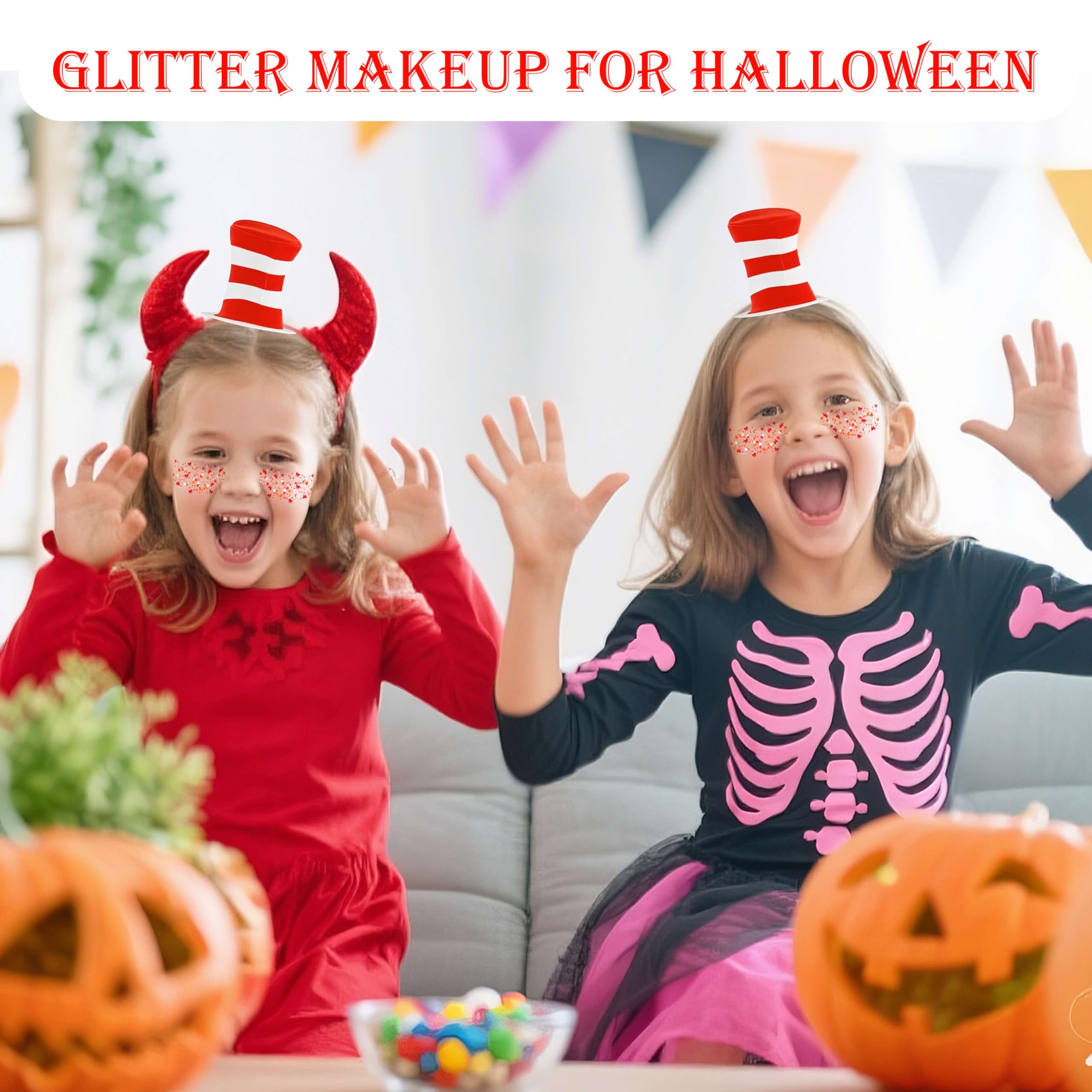 Dazzling Sparkly Effect: Our red and white face glitter is specially designed to catch every eye on Reading Week.The ultra-fine glitter particles create a mesmerizing,sparkly finish that adds a touch of magic to your book-themed celebrations,making you stand out whether you're at a reading event or World Book Day.This red and white glitter is perfect as cat in the hat costume,great cat costume for kids and girls.