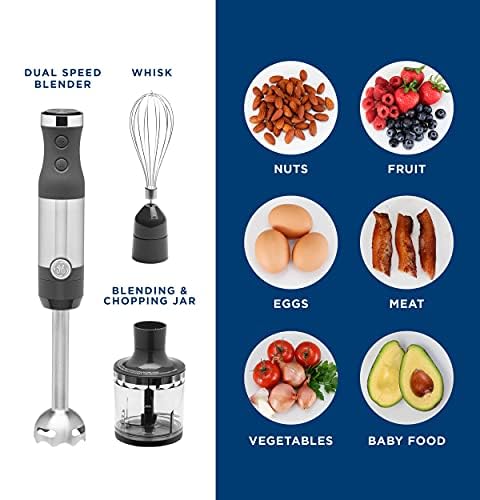 ONE-HANDED OPERATION - Easily add ingredients while you blend thanks to a hand-held blender that ergonomically fits for single-hand operation