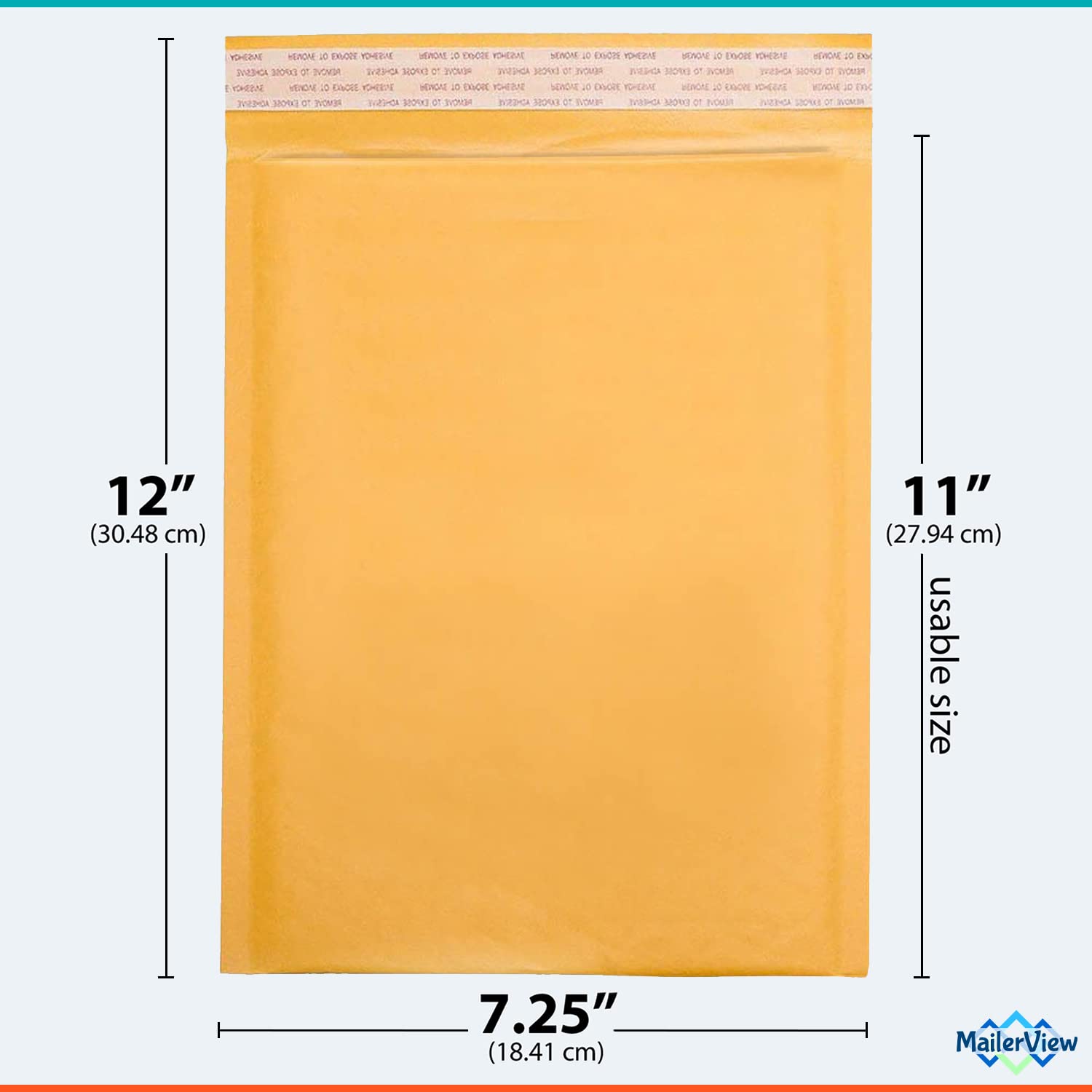 7.25x12 Inches, Bubble Mailers, #1, Shipping bags for Small business, 100 Pack USA Made Kraft, Packaging bags, Padded Envelopes, Bubble Envelopes, With Self Seal Tape, Usable size 7.25 x11, 100 Pack