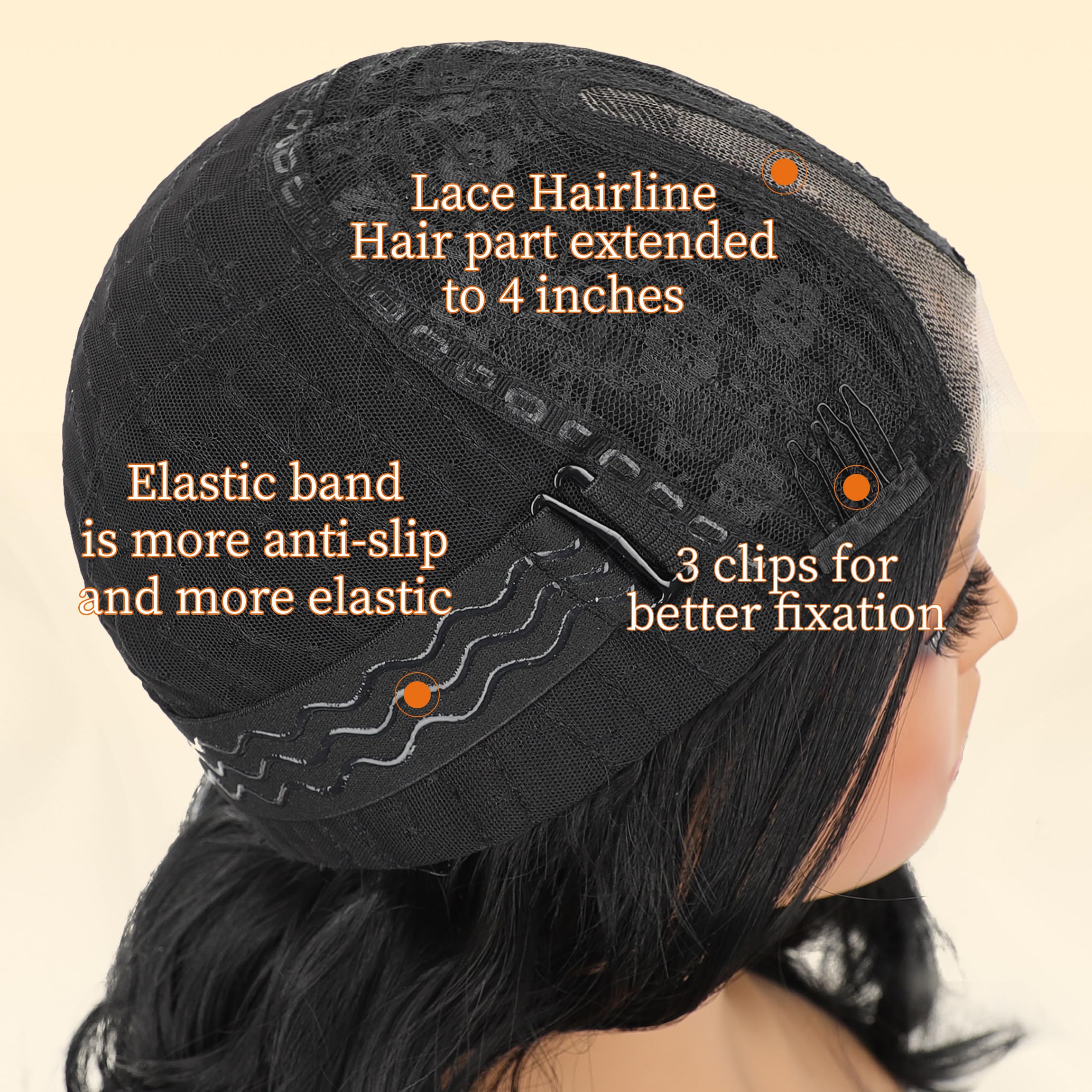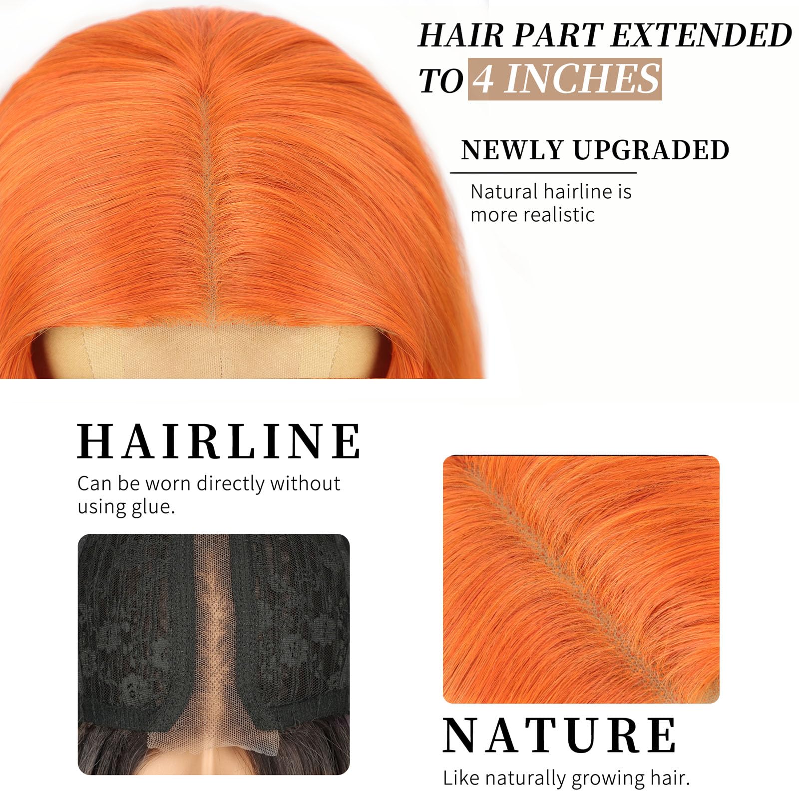 【Wig cap design】Our orange wig for women, The inner net is soft, thin and elastic, comfortable to wear, and the adjustment belt design is suitable for all kinds of head circumference.