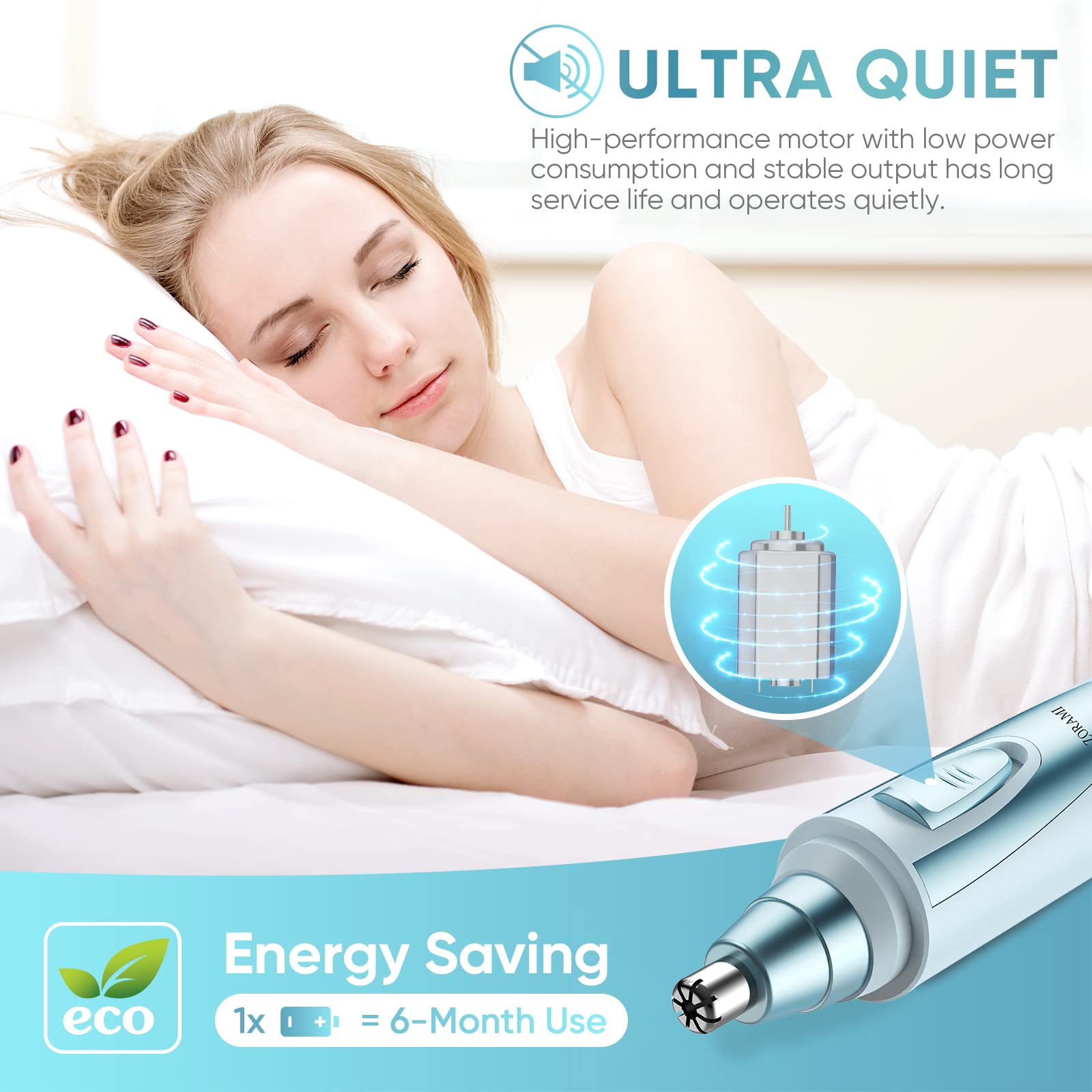 Energy-Saving & Whisper-Quiet Operation: The upgraded motor is more powerful but less power-consuming by 5%. 1pc AA battery (NOT included) can run for more than 6 months for 5mins’ of use at a time. This nose trimmer is suitable for road trips and travel. With operating noise less than 50db, use the nose hair clippers freely.