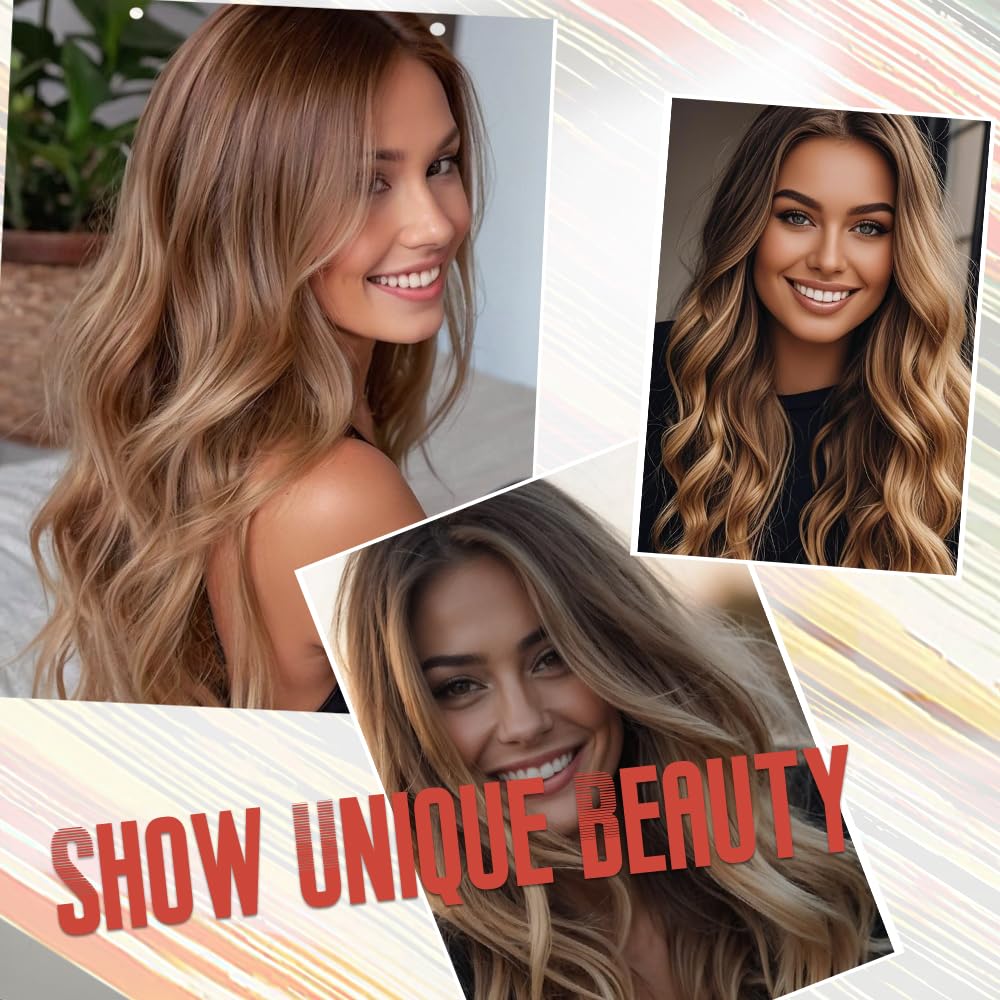 【Secure Fit & Comfortable & Thoughtful】This 26 inch long wavy brown wig is equipped with Comfortable & Ventilation Wig Net with Premium and Truly Skin-friendly Material, Thoughtful Three-comb Inner Design, Extra Elastic Straps Inside the Wig Net, Tested and Optimized Hair Volume Design, all to give you a safe and comfortable wearing experience