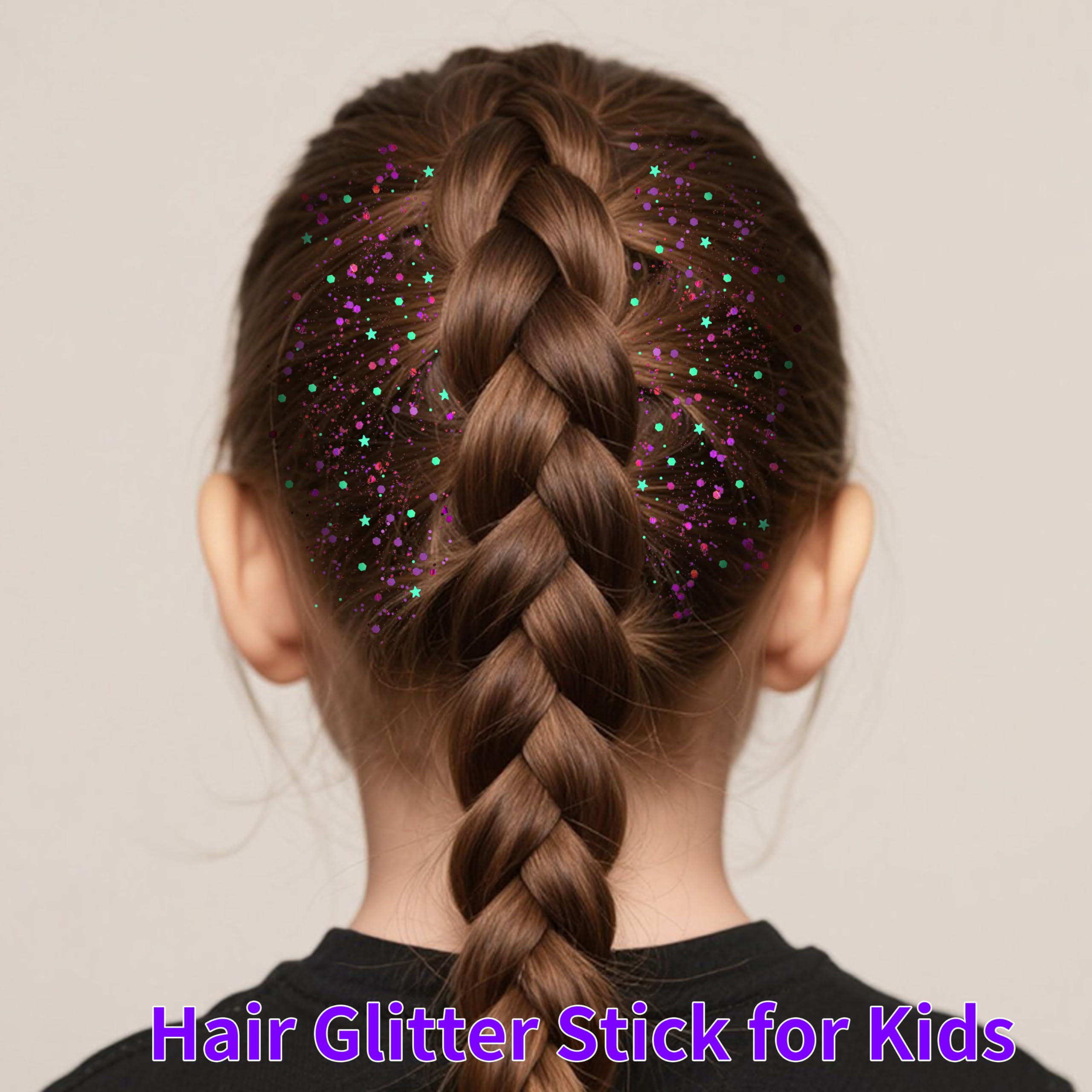 Safe Ingredients&Skin-Friendly:Made with safe,non-toxic ingredients,this purple hair glitter makeup is perfect for both kids and adults.Its skin-friendly formula ensures it won't irritate or cause discomfort,making it suitable for all skin types.Whether you're applying it to your face,body,or hair.This glitter stick delivers a beautiful,sparkling finish without compromising on safety or comfort—ideal for anyone looking to shine with peace of mind!