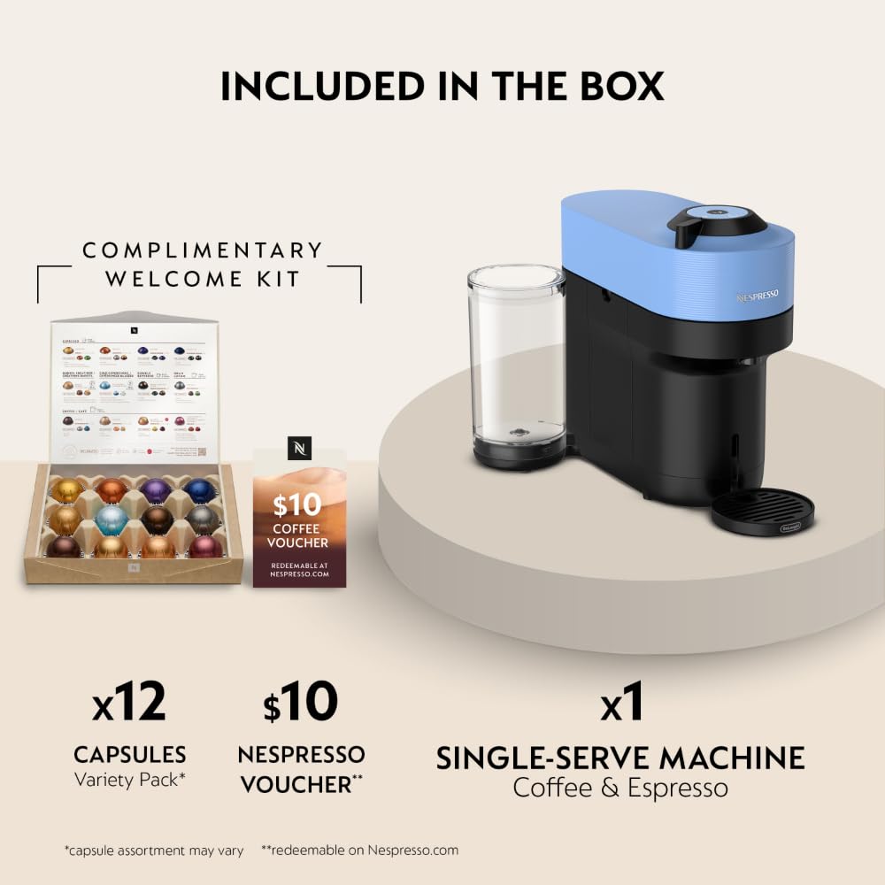 Add a touch of colour to your life with the Nespresso Vertuo POP+ machine. Bursting in a range of 3 vibrant colours, from Mango Yellow to Pacific Blue, Vertuo POP+ makes a bold statement to match your every style. Its sleek and compact design ensures it fits in any environment, whether kitchen or living room. With five cup sizes, from Espresso to Alto and Cold Brew style coffee, simply choose your Vertuo capsule, pop it in, and you’re away at the touch of a button. To keep your coffee adventures spinning, Vertuo POP+ uses the patented Centrifusion technology. Reading the code on each Vertuo capsule and adjusting the slightest settings to extract the hidden treasures of your coffee. So that you enjoy the ride, time and time again. The Vertuo POP+ has a water tank accessible from the side. Its adjustable drip tray offers two positions in order to accommodate bigger mugs. All in a compact design, that’s made from 35% recycled plastic. Vertuo POP+ will never slow you down thanks to its state-of-the-art connectivity features. Once connected, your machine will stay up to date, ensuring you get a smooth and consistent coffee experience. As a bonus, you’ll surely appreciate the easy maintenance of your machine, from the comfort of your smartphone. For a coffee journey, with a POP+