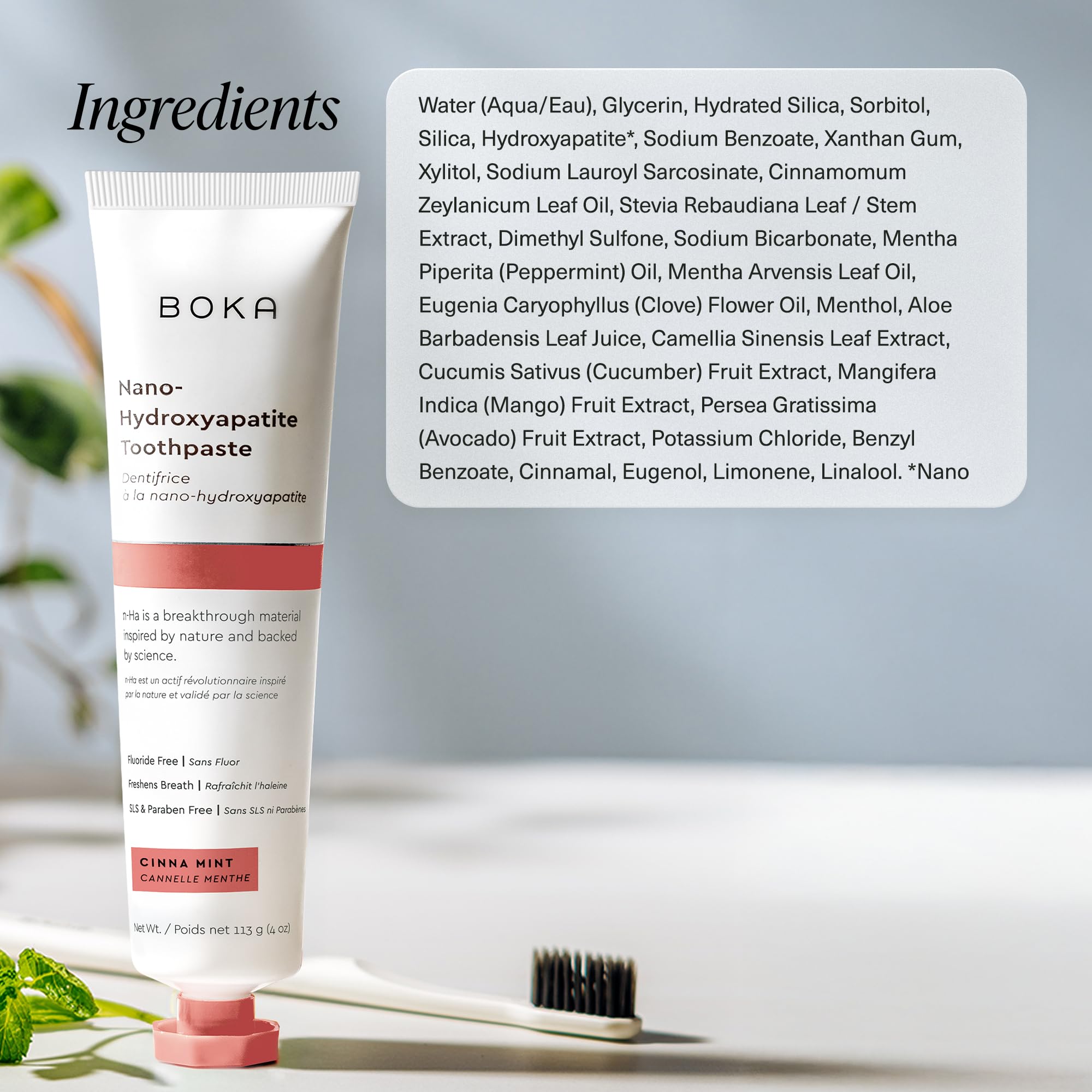 ENAMEL CARE: Our proprietary and innovative formula includes Nano-hydroxyapatite (n-Ha) - a biometric mineral form of the same ingredient that naturally makes up 97% of your teeth material and 70% of your dentin. n-Ha has been the subject of significant research for decades with a wide variety of potential benefits across dentistry and oral care.