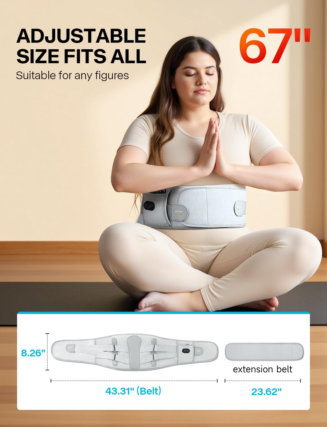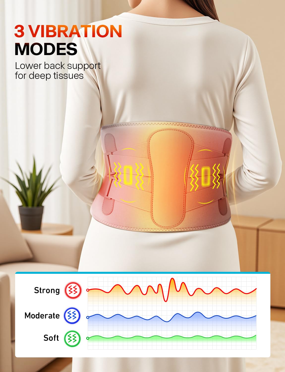 【UPGRADE DUAL ELASTIC STRAPS】Brand new dual adjustable elastic strap of the back heating pad brings warmer relief and intense vibration. The heated belt better fits around your waist by adjusting the compression and size.