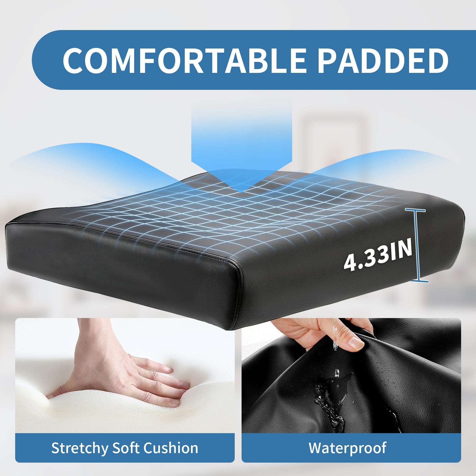 COMFORTABLE EXPERIENCE - Adjustable backrest and headrest, wide armrests and footrests provide all-around support, upgraded cushions are filled with high-density memory foam, 4.33-inch thickness effectively cushions pressure and reduces fatigue from sitting for a long period of time, and PU leather wrapped around the outer layer is waterproof and breathable, providing a comfortable seating experience for the customer.