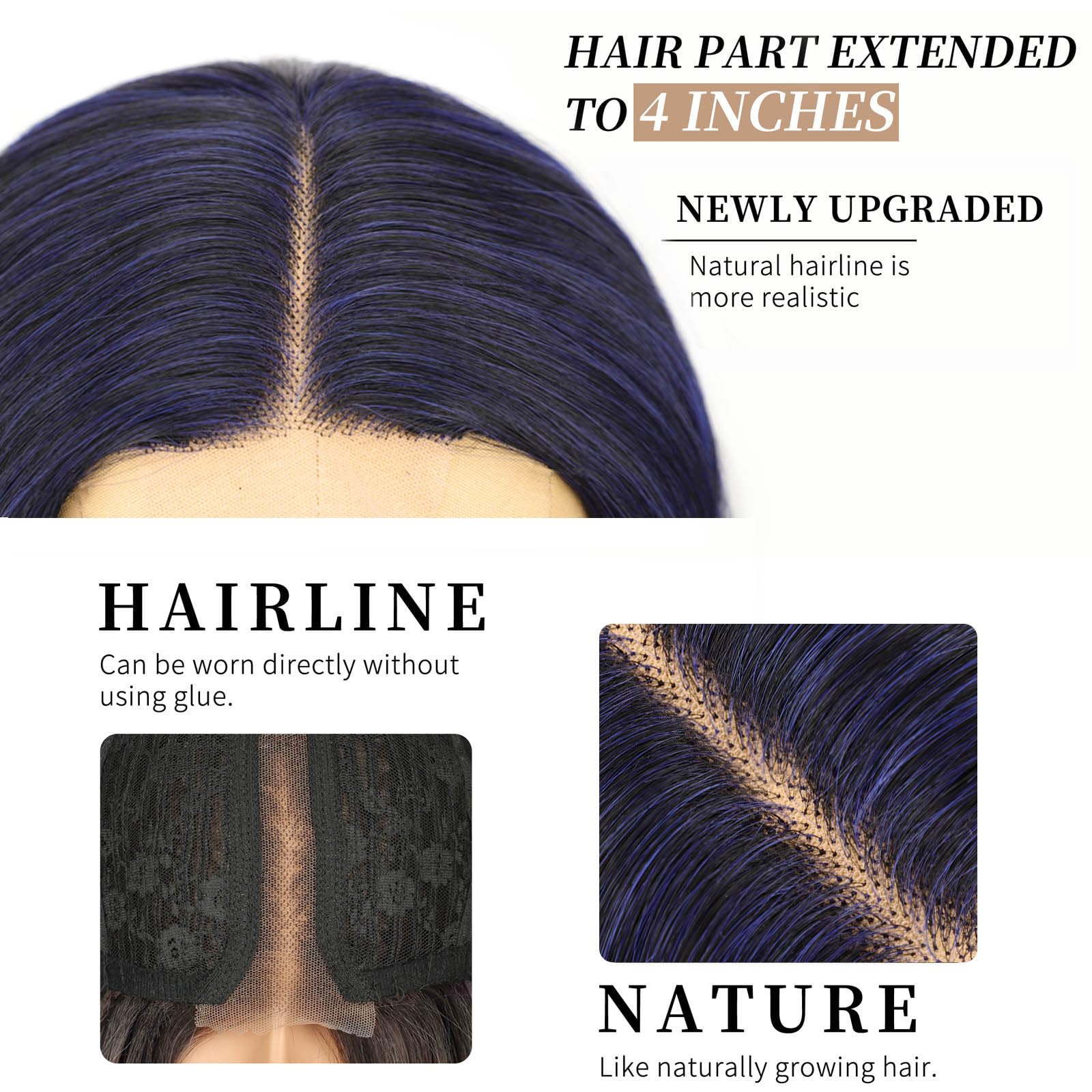 【New upgrade hair seam】Blue wavy wig adopts a new and upgraded process at the hairline. It's lace hairline , which makes it more natural to wear, no need to use glue, does not hurt the forehead skin, easy to wear, does not require a lot of time