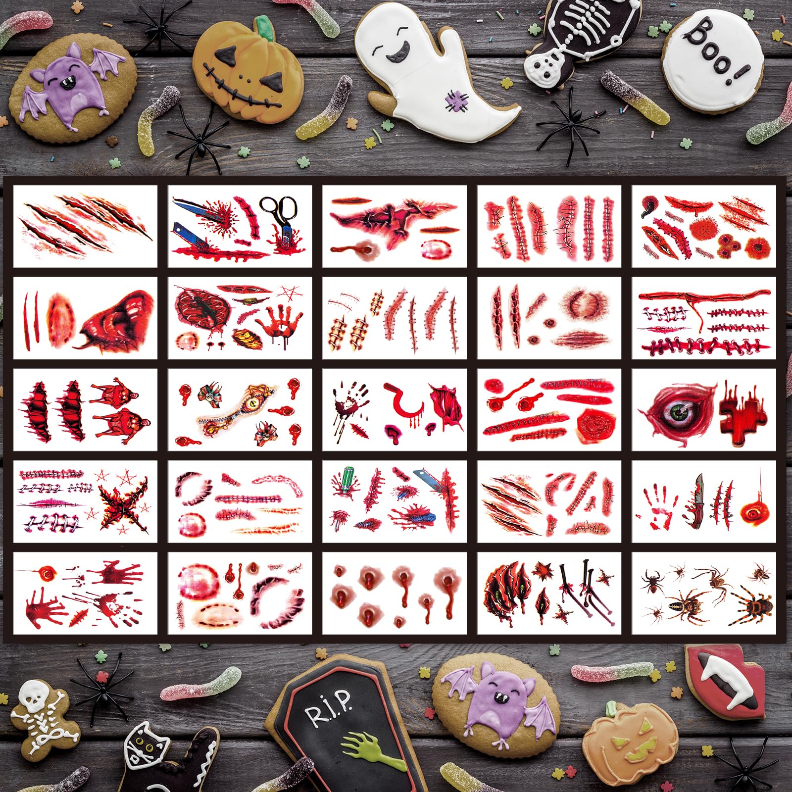 【HEALTHY AND SAFE】NON-TOXIC ink semi Halloween scar zombie makeup temporary tattoos passed FDA, healthy, meet rigid environmental materials and safety standard.