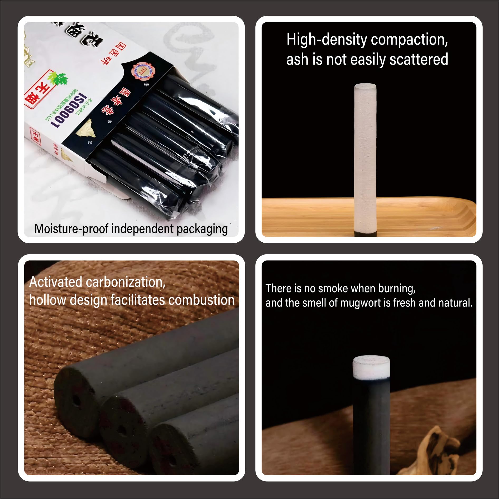**High-Quality Moxa Sticks for Optimal Results**:Selected from natural premium quality mugwort planted in the hometown of famous Chinese doctors,The carbonized moxa sticks are made using the ancient carbonization method, naturally dried, cut and packaged.,handmade, with mild heat and strong penetration, its efficacy can penetrate deep into muscles