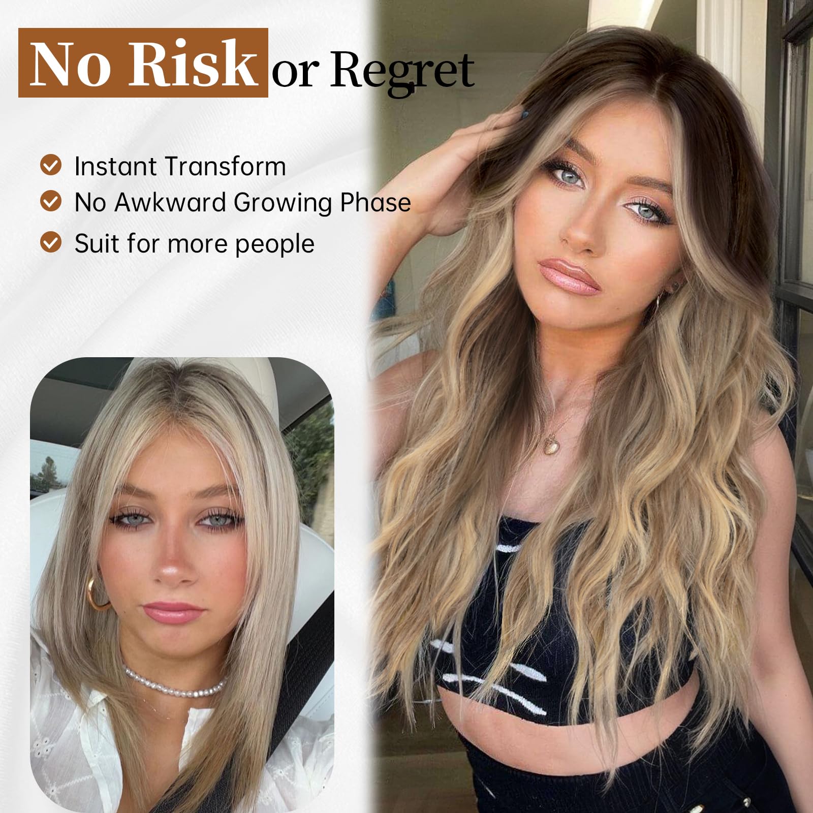 【New upgrade hair seam】This dirty blond wig adopts a new and upgraded process at the hairline. It's lace hairline , which makes it more natural to wear, no need to use glue, does not hurt the forehead skin, easy to wear, does not require a lot of time