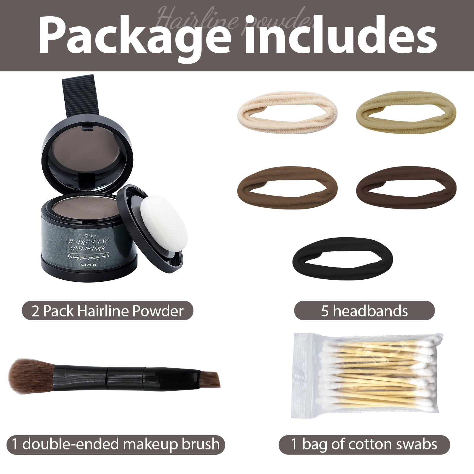 Value Package: Our set not only contains two bottles of high-quality hairline powder, but also carefully prepared five fashionable rubber bands, a practical ended makeup brush and a bag of cotton swabs for you. Double the powder means double the beauty and convenience