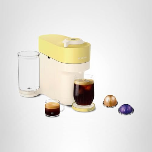 Vertuo Pop+ coffee and espresso maker in LIMITED-EDITION color Pastel Yellow makes a bold statement to match your style. With five cup sizes, from Espresso to Alto and Cold Brew style coffee, simply choose your Vertuo pod, pop it in, and you’re away at the touch of a button. To keep you spinning, the machine reads the code on each pod to reveal its hidden treasures, from aroma to crema. The Vertuo Pop+ has a water tank accessible from the side, all in a compact design.