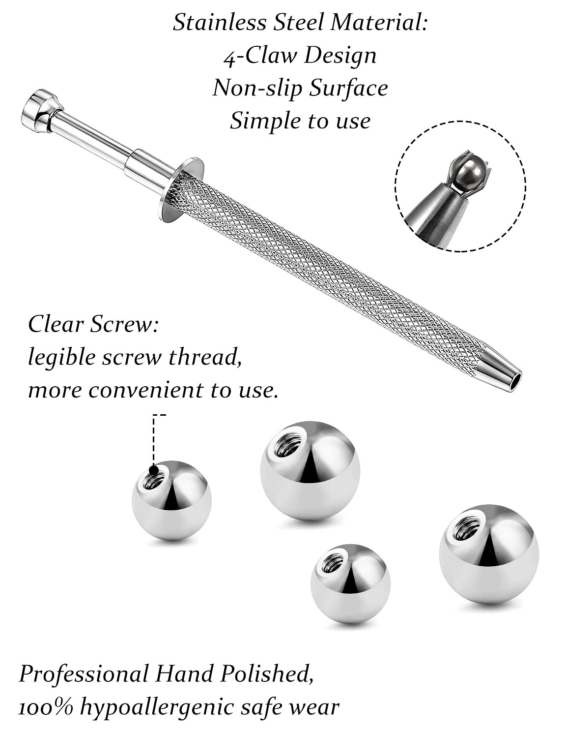 [PRODUCT SIZE]: Piercing Balls Grabber Tool: 120mm=4.7inch, Piercing Balls:14g*5mm, 16g*3mm.