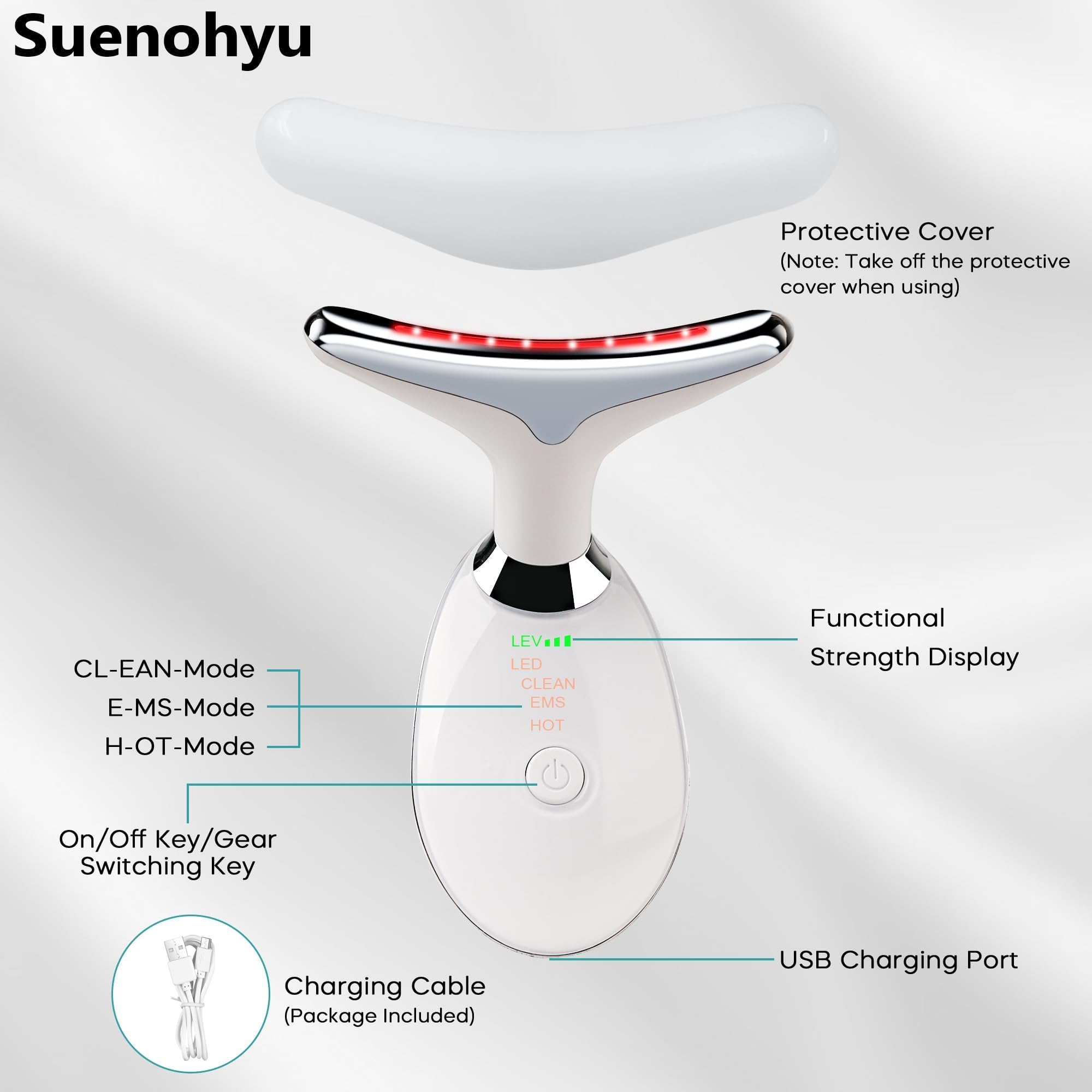 [7-in-1 Red Light Therapy] This face neck massager has 7 different LED light modes and 3 massage modes that are suitable for massaging the face and neck. Red light: Treatment of full-face wrinkles.