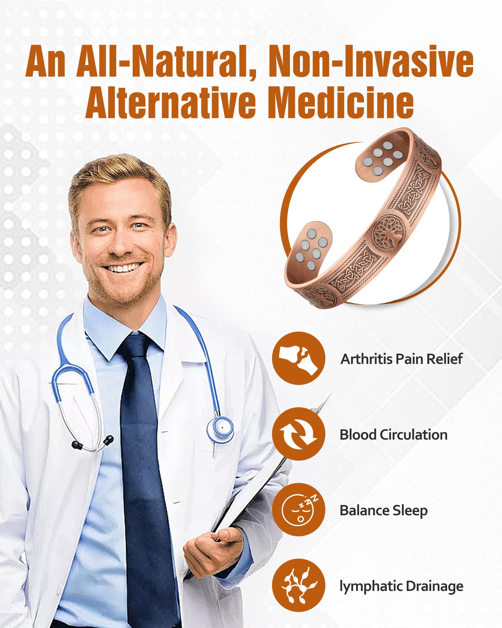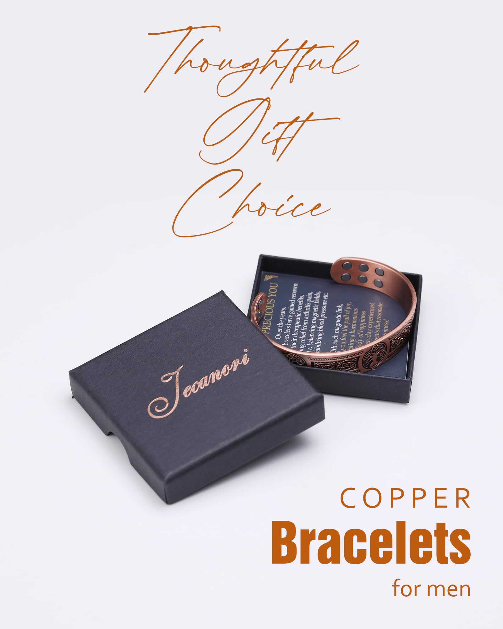 [UNCOMPROMISED QUALITY] Features an exquisitely detailed Tree of Life design, a timeless symbol that represents growth, strength, and a deep connection to nature. Copper bracelet for men are meticulously crafted using high-quality copper. HYPOALLERGENIC, LEAD & NICKEL FREE, suitable for those with sensitive skin.