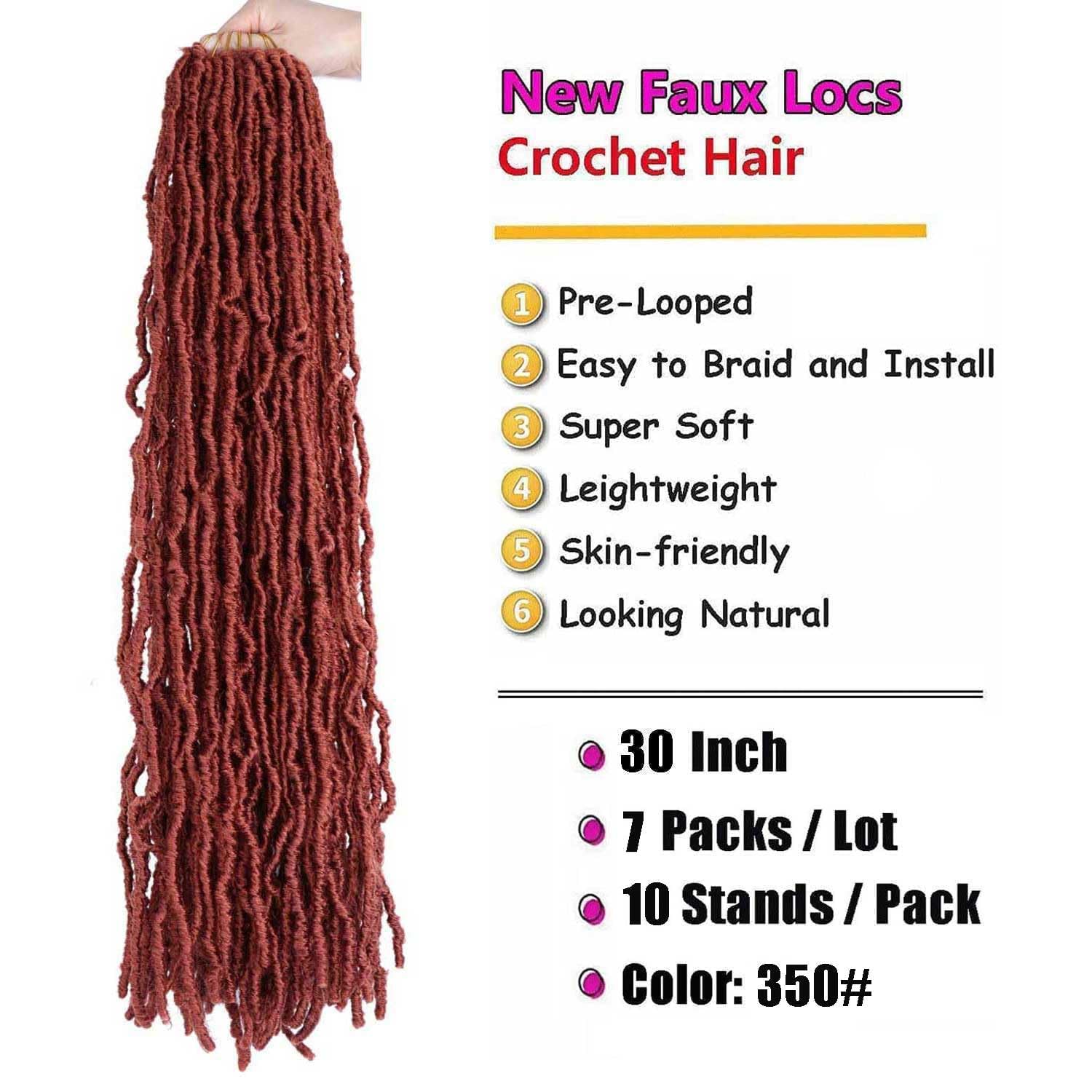3. Locs Crochet Hair PACKAGE : Faux Locs 30 Inch, 7 packs/lot (total 70 stands). Normal 7 packs enough make a full head .More Information : Our Soft Locs Crochet Hair offers multiple sizes for customers from 12/ 18/ 20/ 22/ 24/ 26/ 30/ 36 inch to choose .