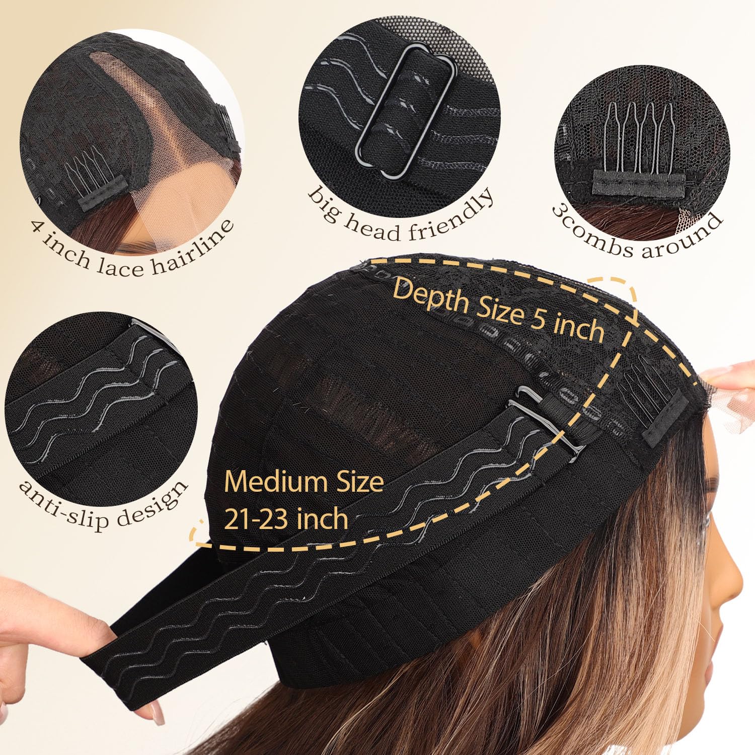 【Wig cap design】Our reddish brown wig for women, The inner net is soft, thin and elastic, comfortable to wear.Wig cap circumference is between 21 and 23 inches