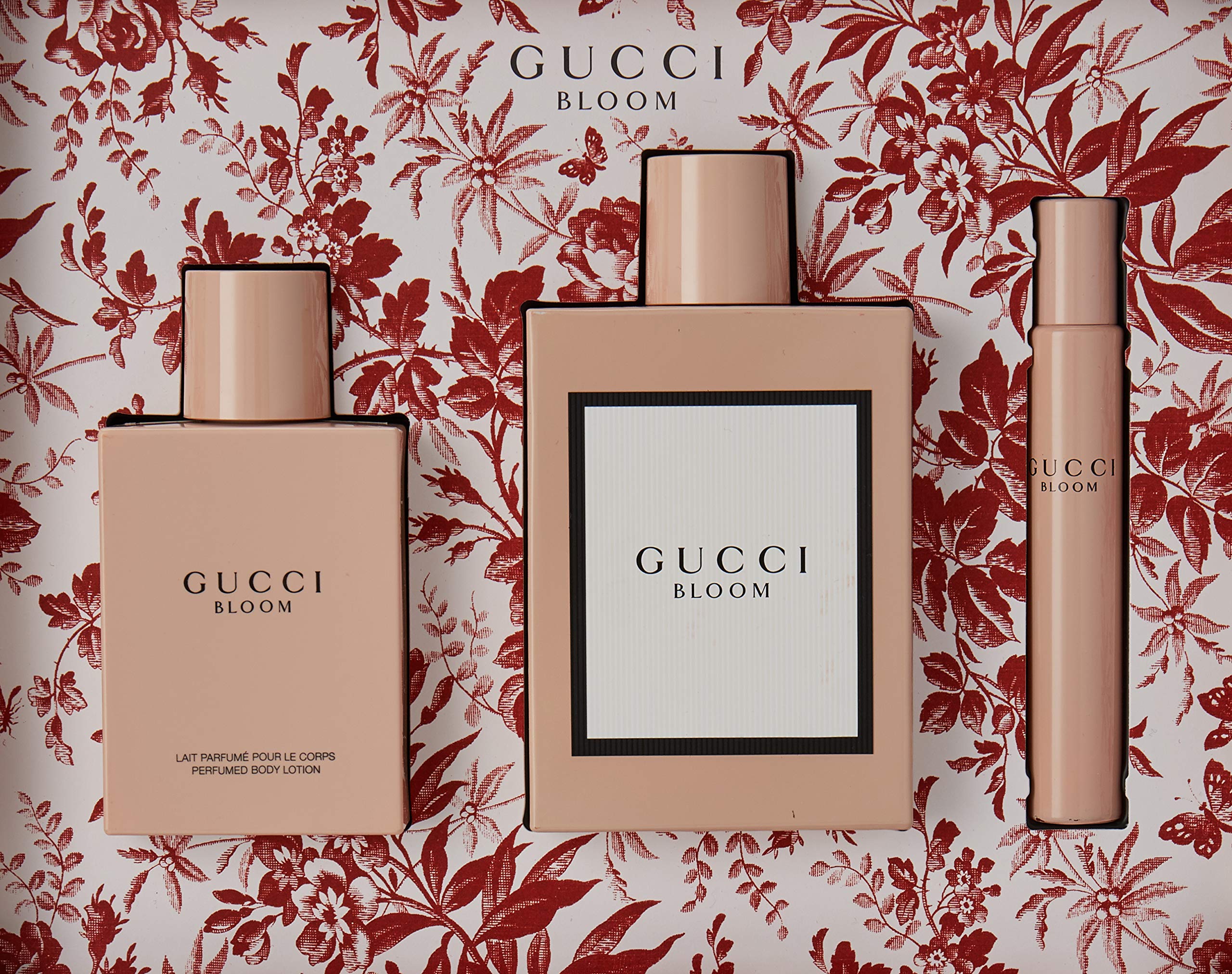 Gucci 3 Piece Bloom Eau de Parfum Spray Gift Set for Women. Mood: Romantic & Feminine