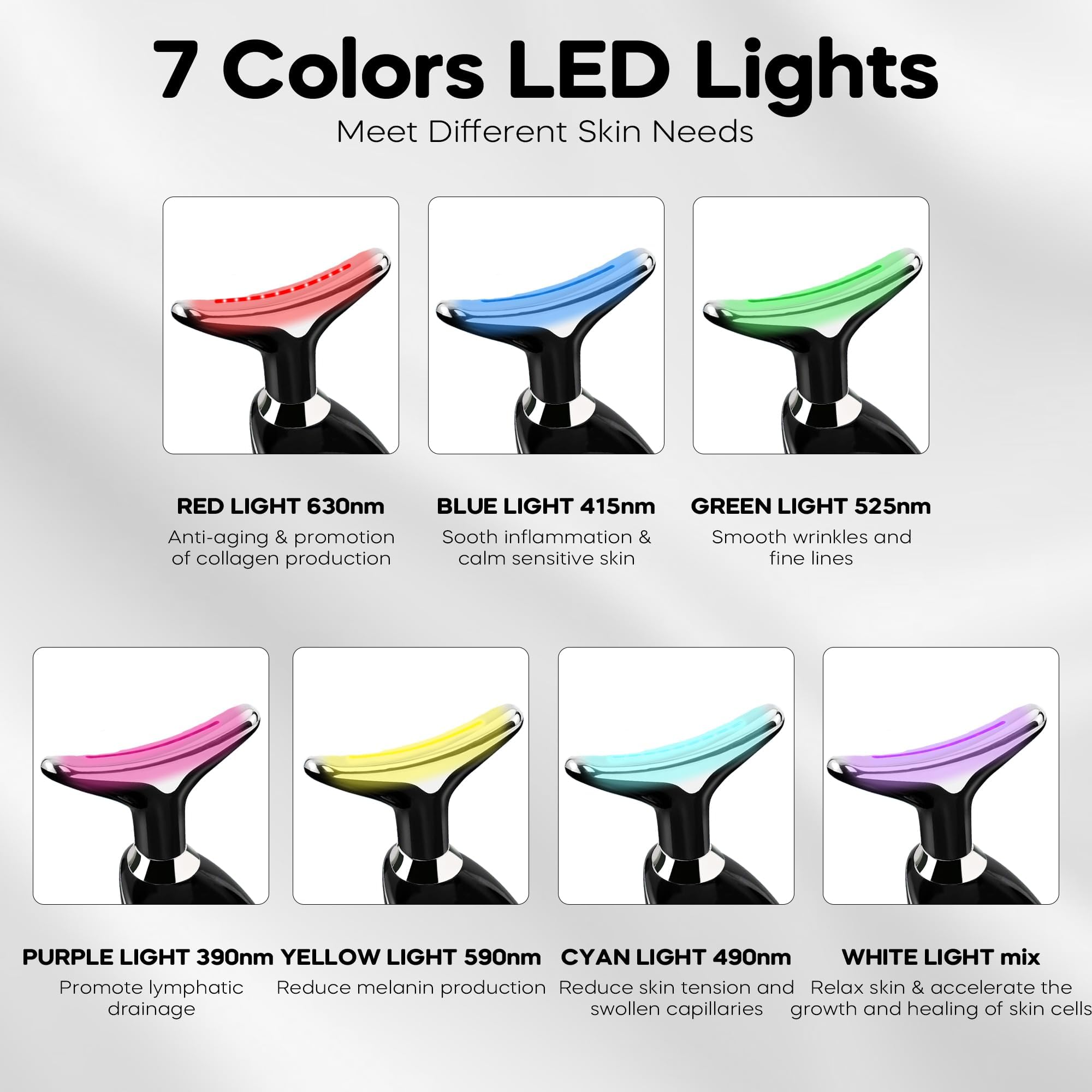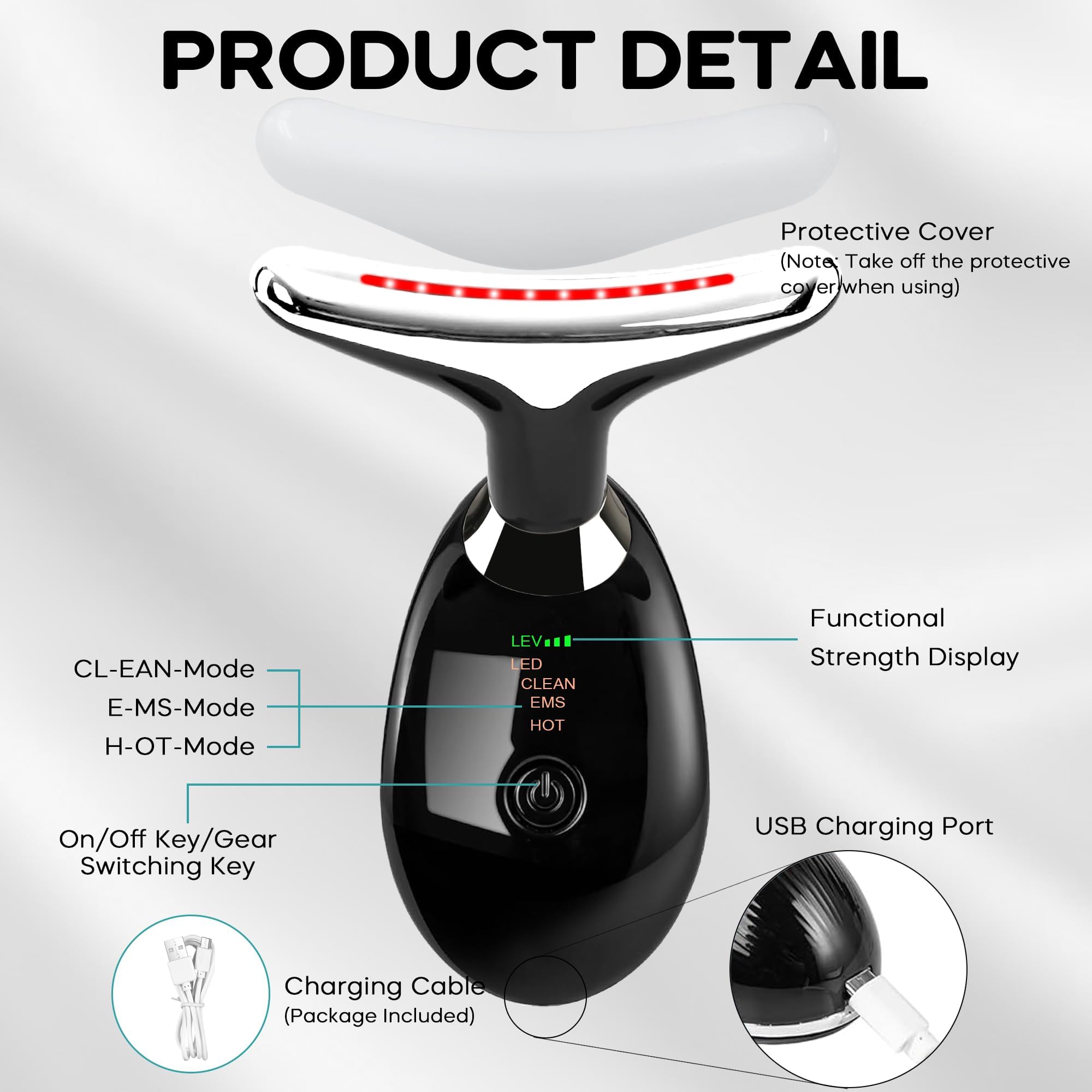 [7-in-1 Red Light Therapy] This face neck massager has 7 different LED light modes and 3 massage modes that are suitable for massaging the face and neck. Red light: Treatment of full-face wrinkles.