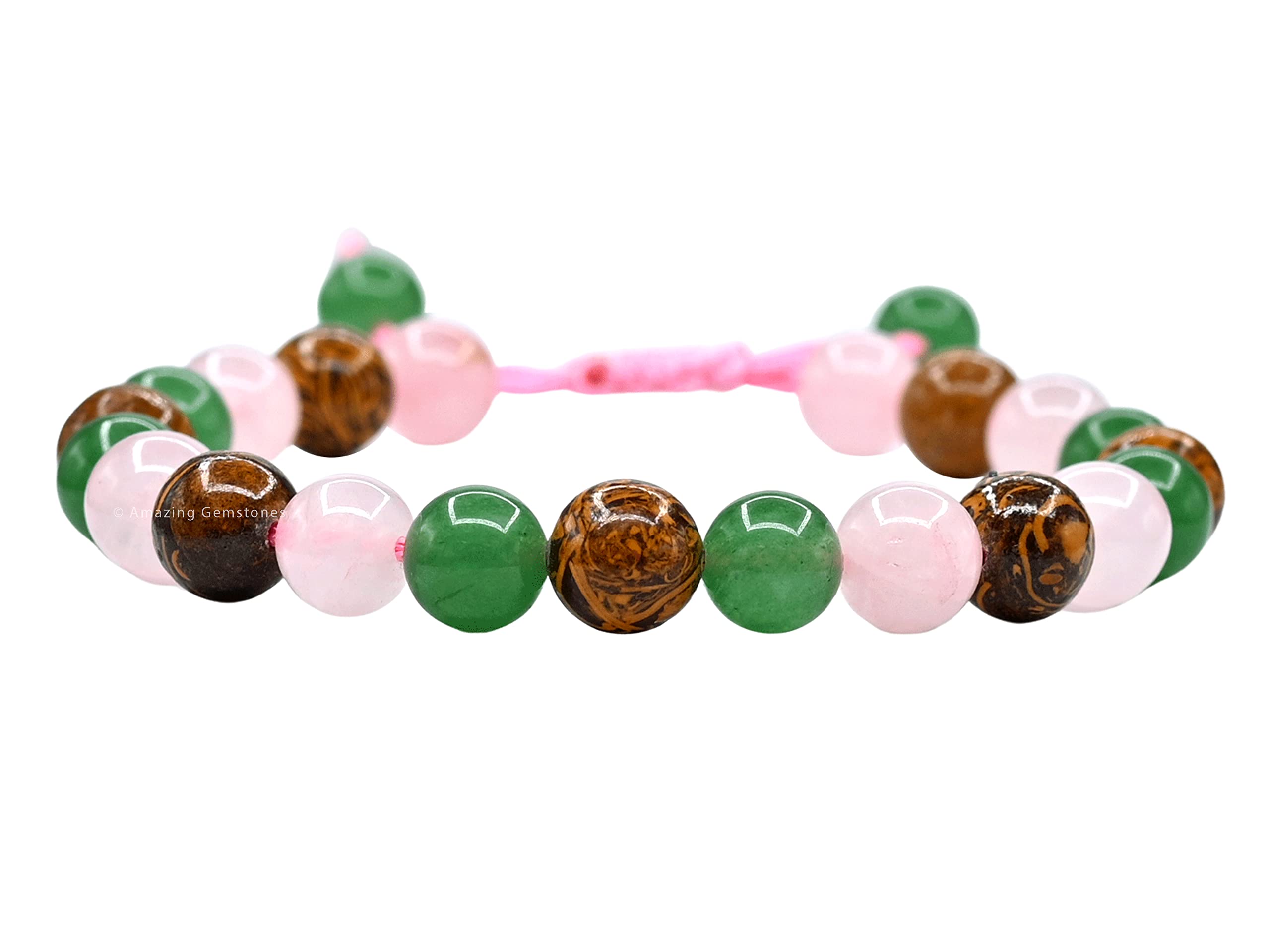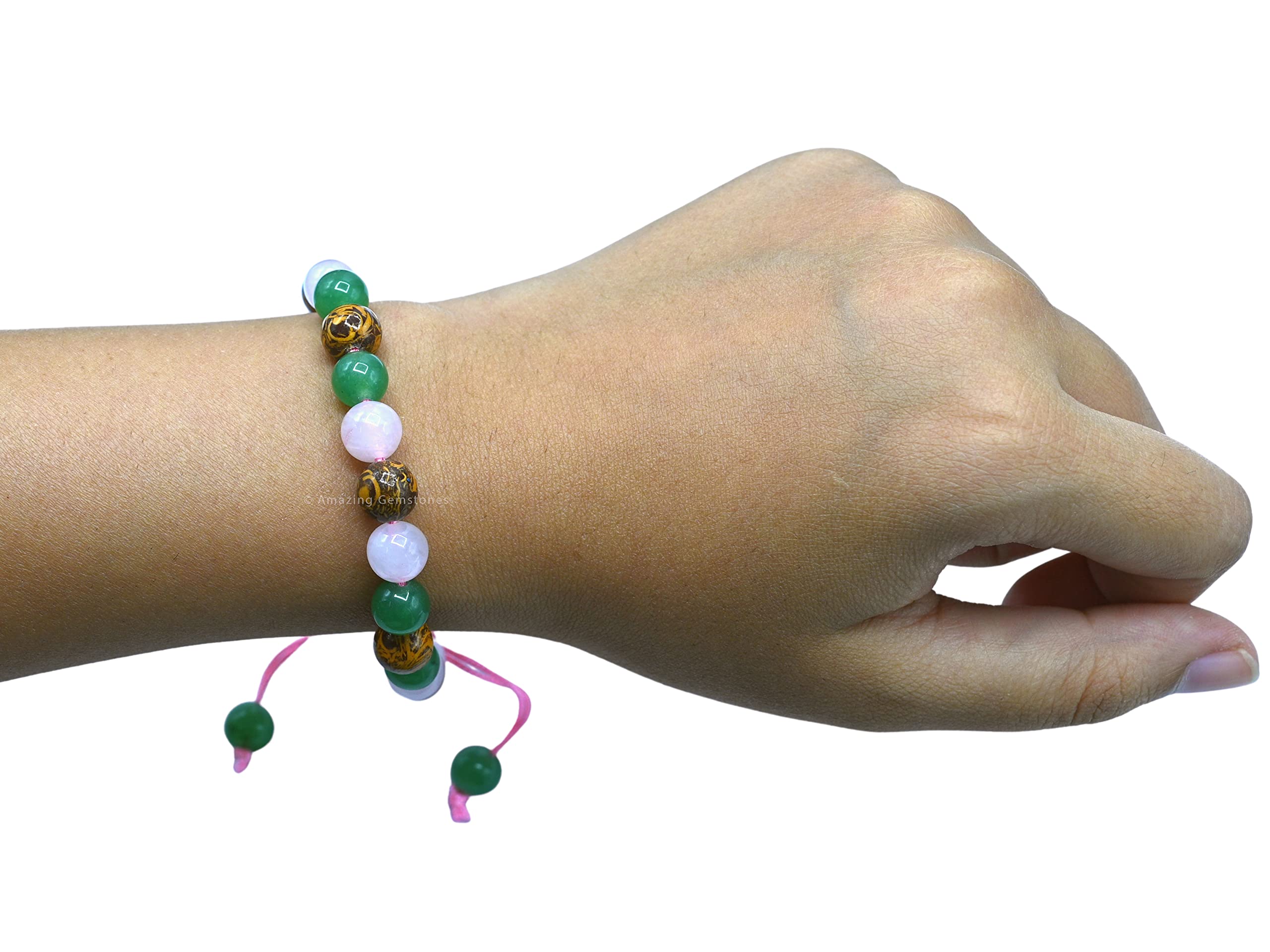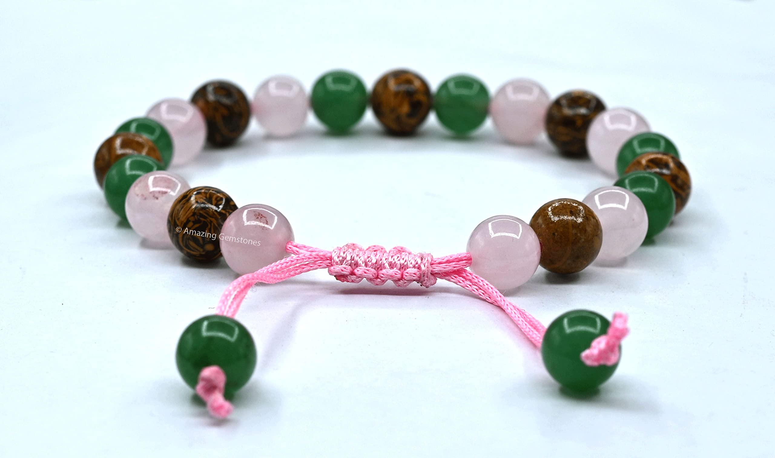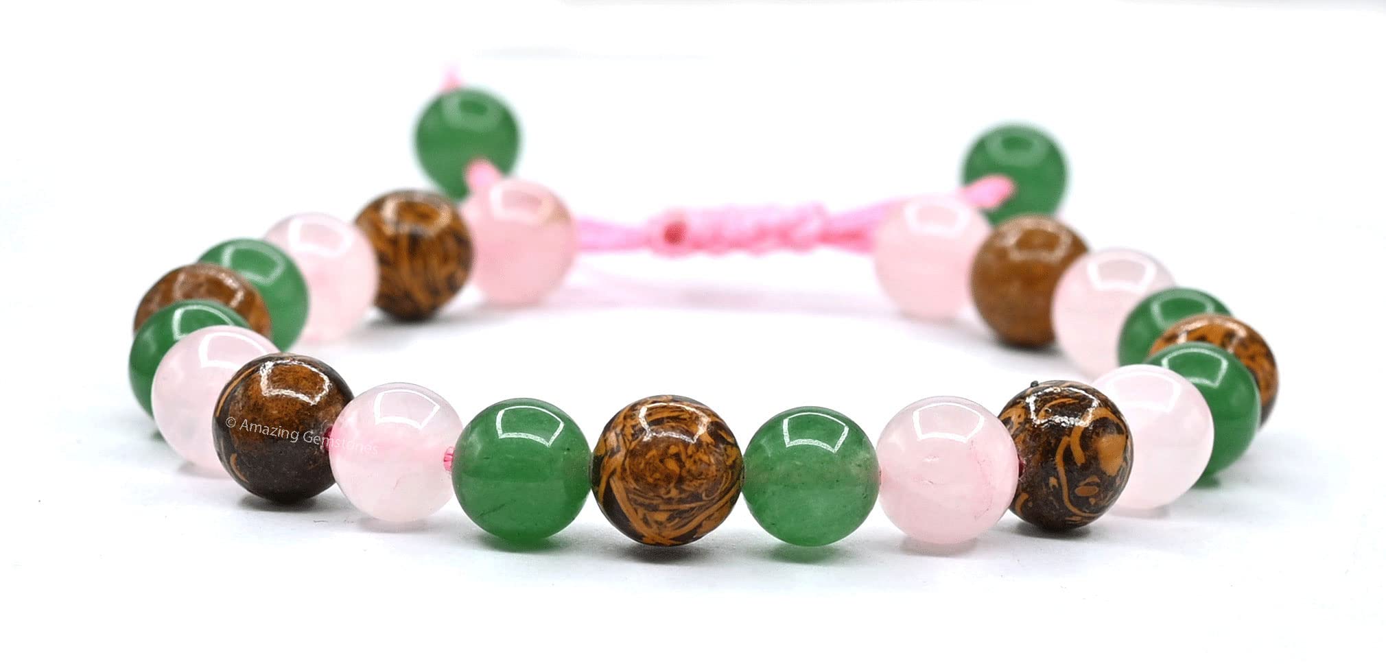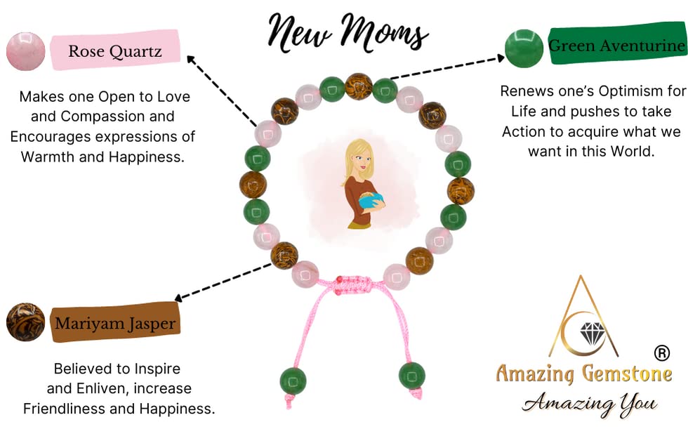 Bracelet for New Moms contains real crystal beads Green Aventurine, Mariyam Jasper and Rose Quartz. Green Aventurine for Optimism, Mariyam Jasper for Friendliness & Rose Quartz for Warmth Love Compassion Stocking Stuffers.