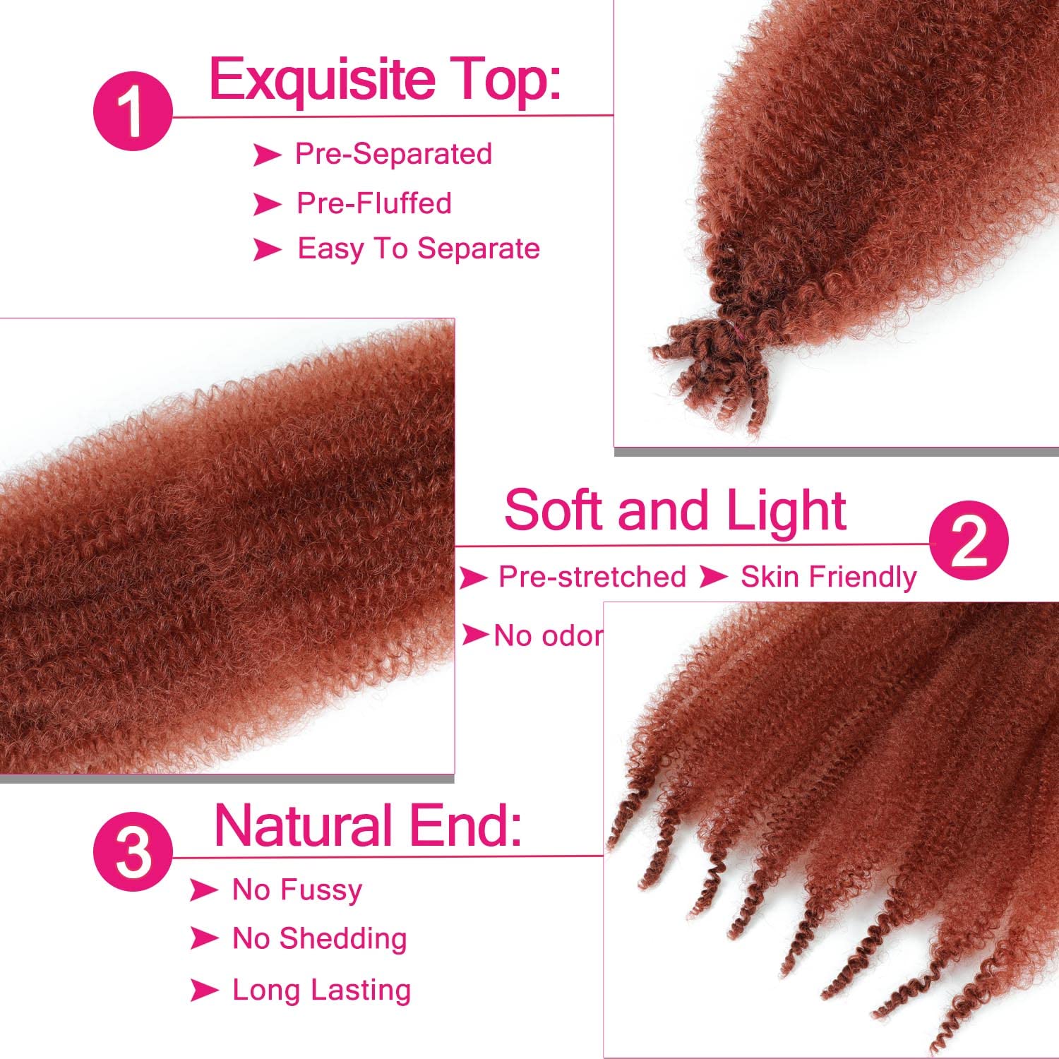 Advantage: springy afro twist hair Is Soft On Skin & Ultra Lightweight, No Smell, Easy To Separate, No Fussy Or Shedding, Pre-Separated & Pre-Fluffed For Easy Installation