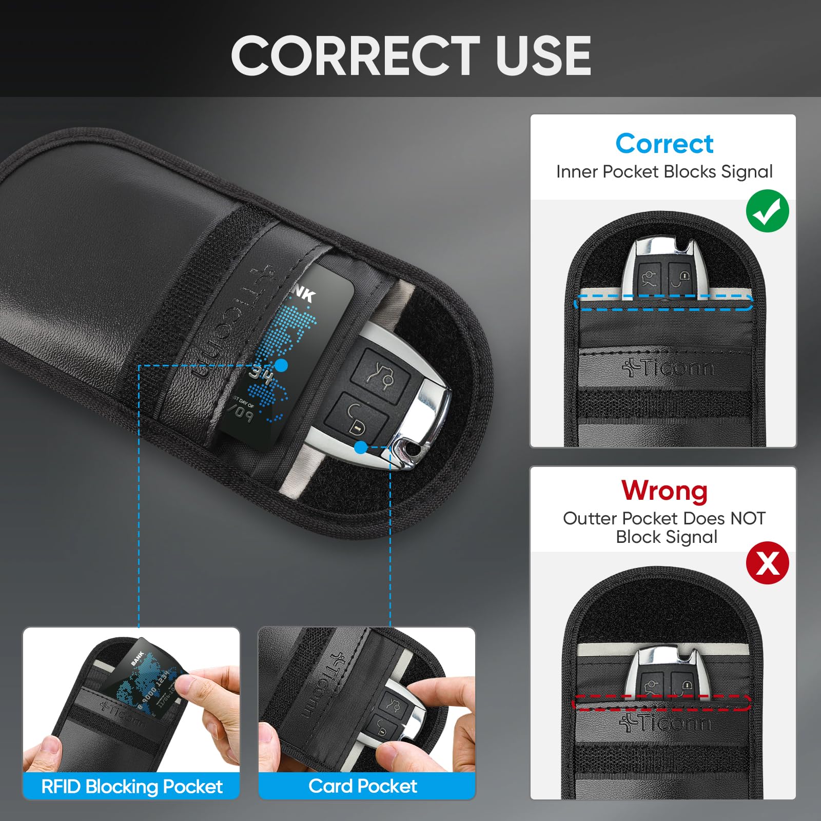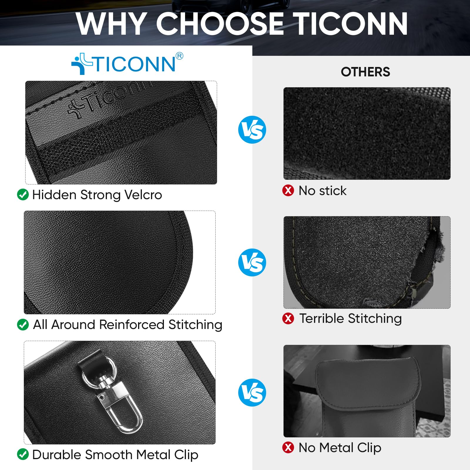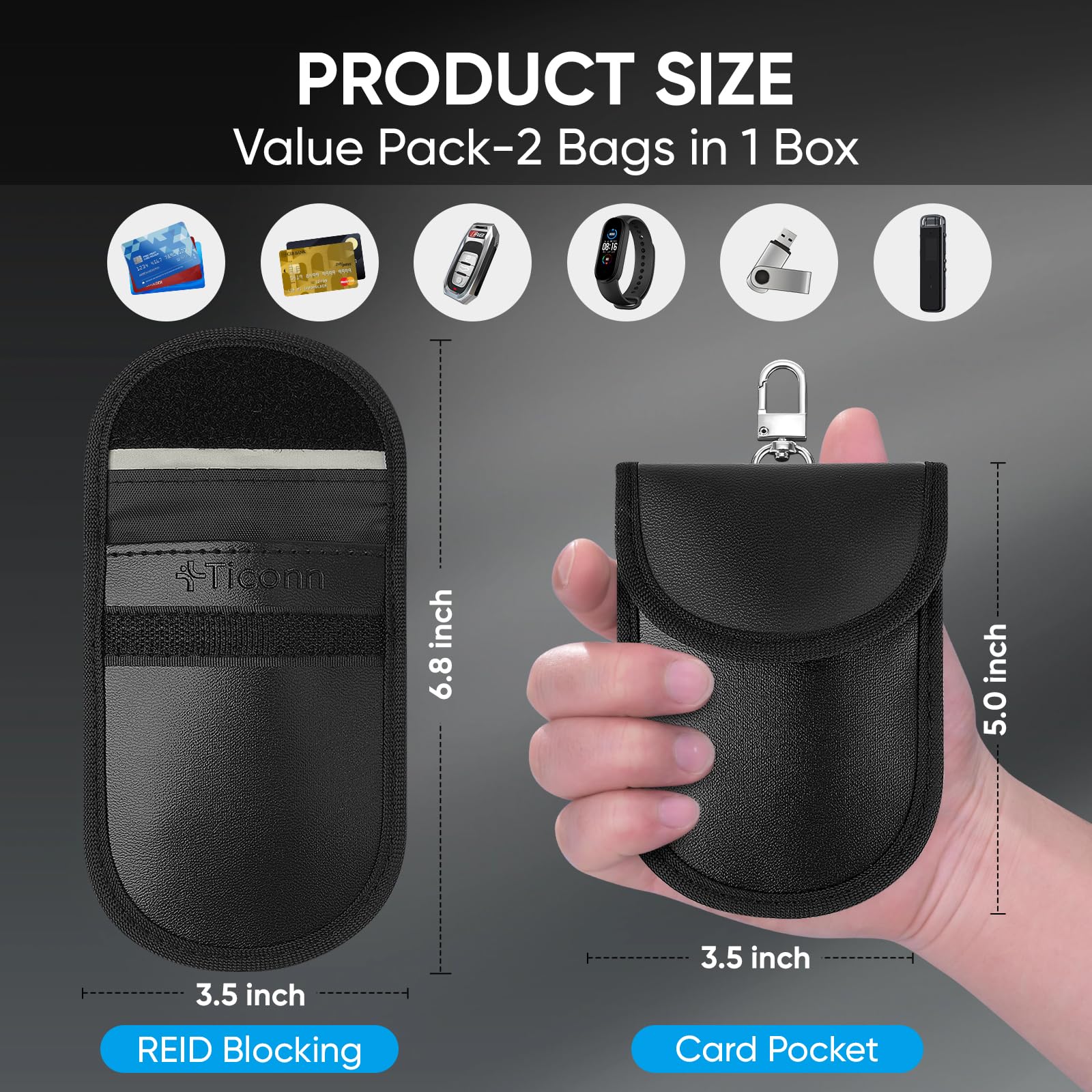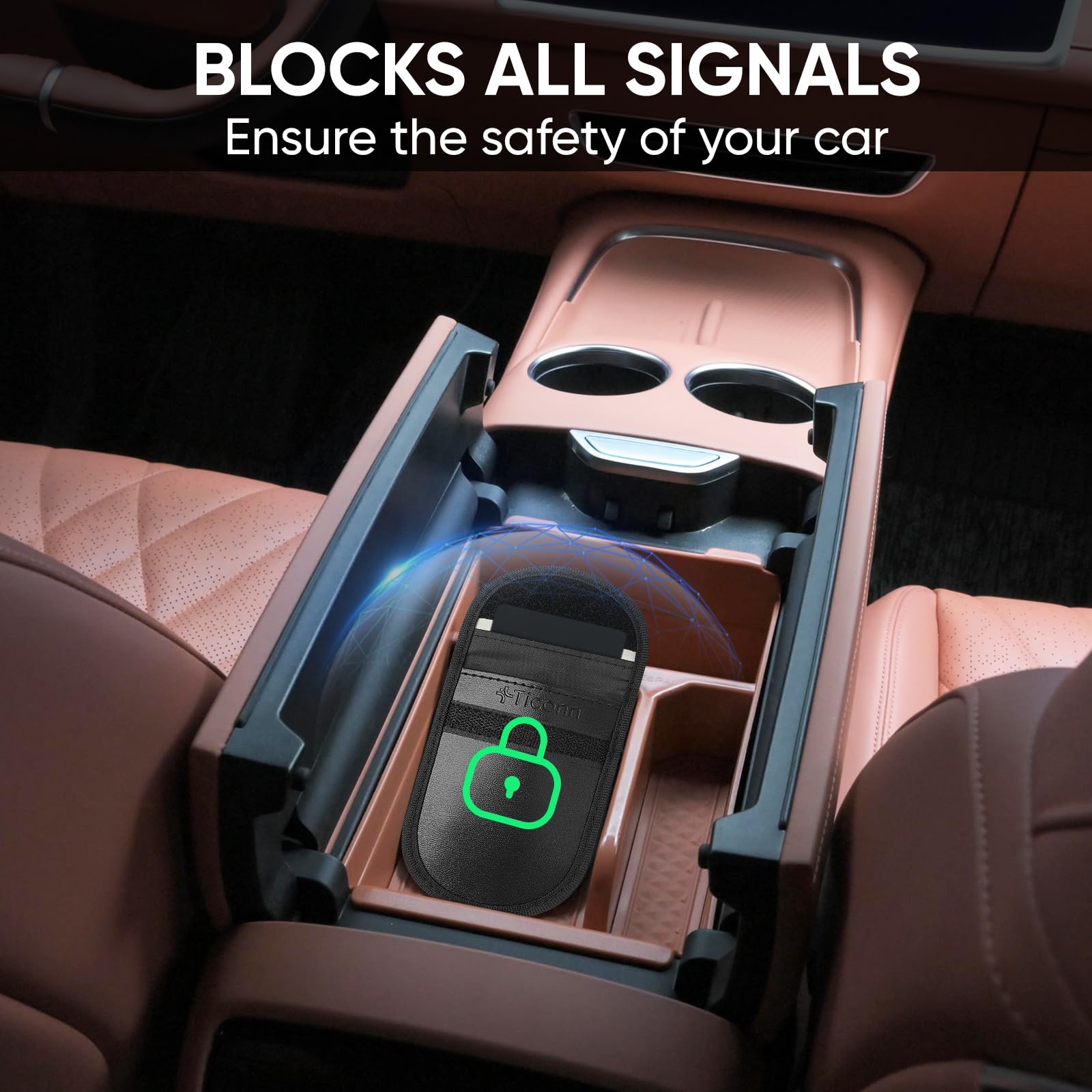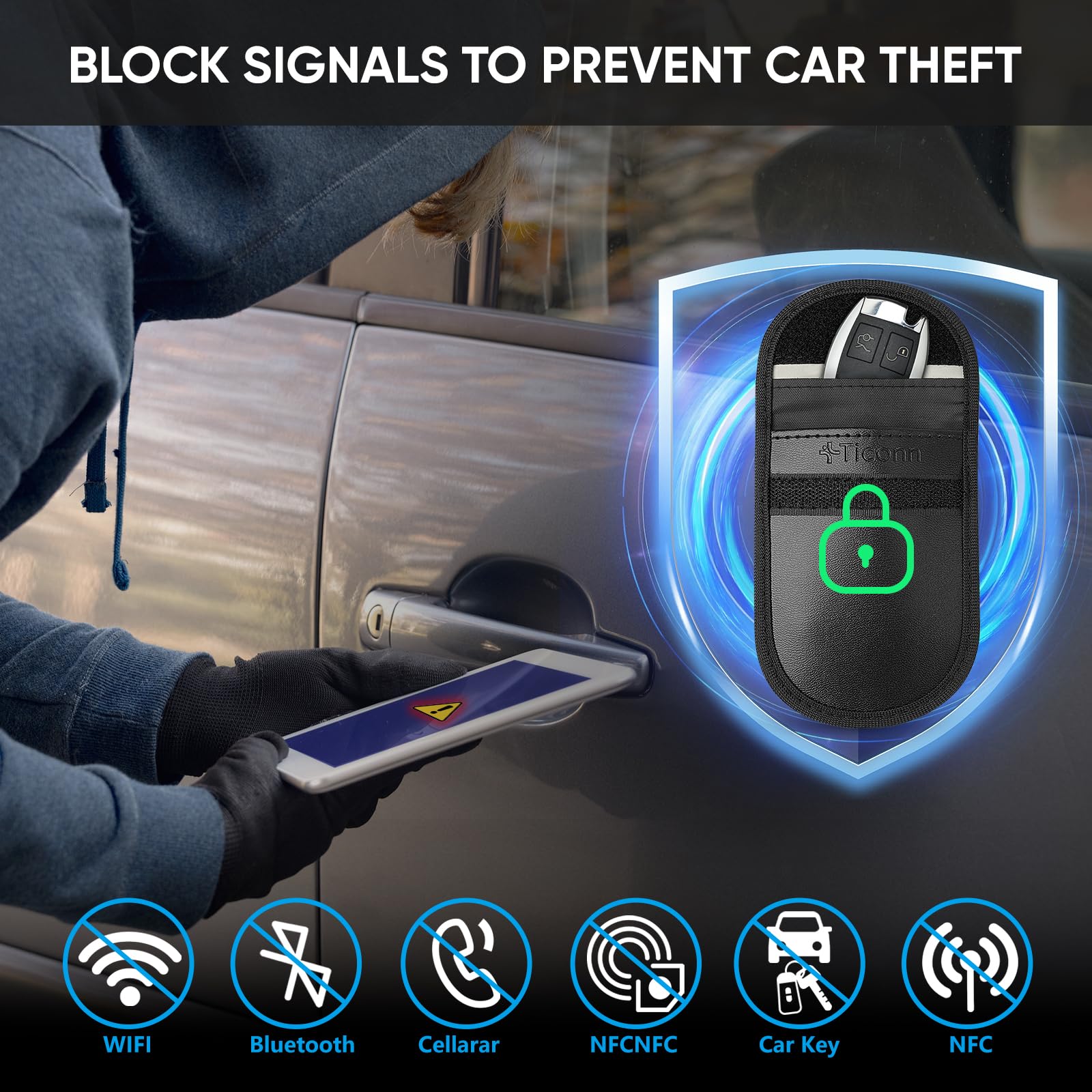 WHY YOU NEED ONE Get your car protected. TICONN faraday bag provides a complete signal blocker for your vehicle key fob. This prevents thieves from picking up and relaying signals from your key, to shield against break-ins and keyless ignition theft