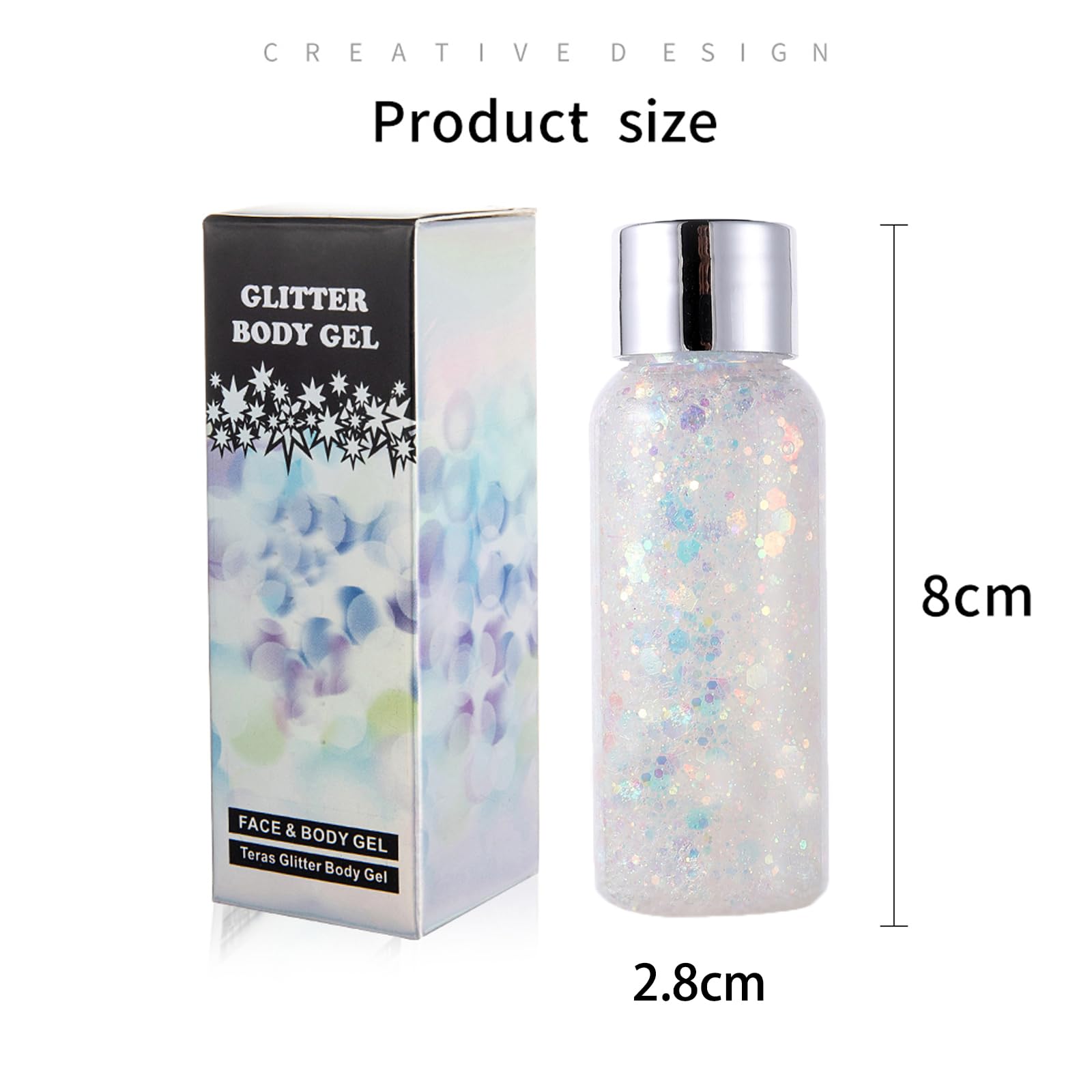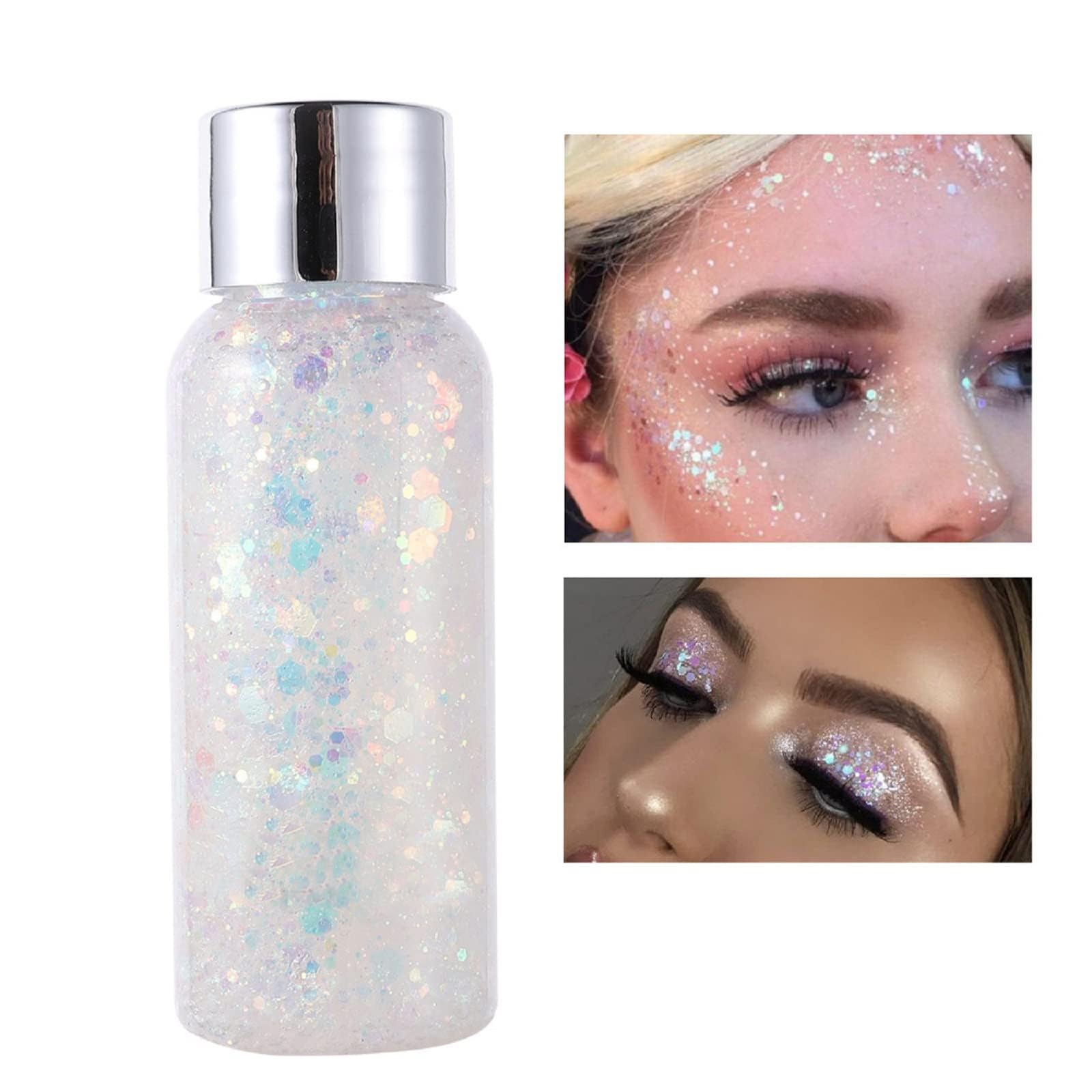 Wide Applications --- This cosmetic chunky glitters flakes gel perfect for your body from head to toe: face, body, eyeshadow, lips, cheeks, hair, nail art, and more,perfect for rave hair accessories and face glitter rave.When using the glitter gel on the body, you can dust some on the collarbones and shoulders for a super shimmering effect,giving you sparkle and gorgeous makeup