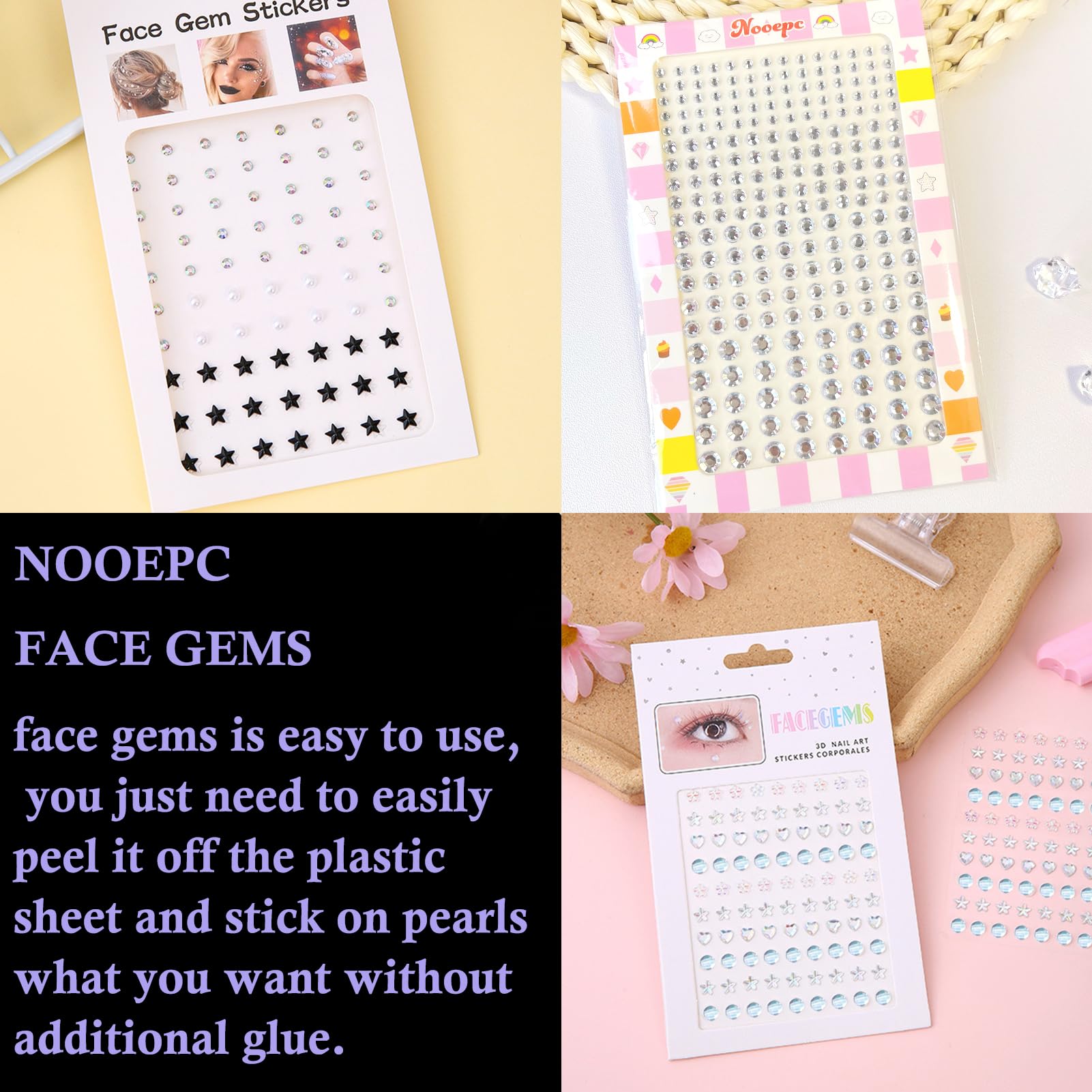 💎【Durable and Reusable】: Each face jewels for makeup is backed with glue. The face rhinestones for makeup can be used over and over again. When the glue dries, it can be used again with eyelash glue.