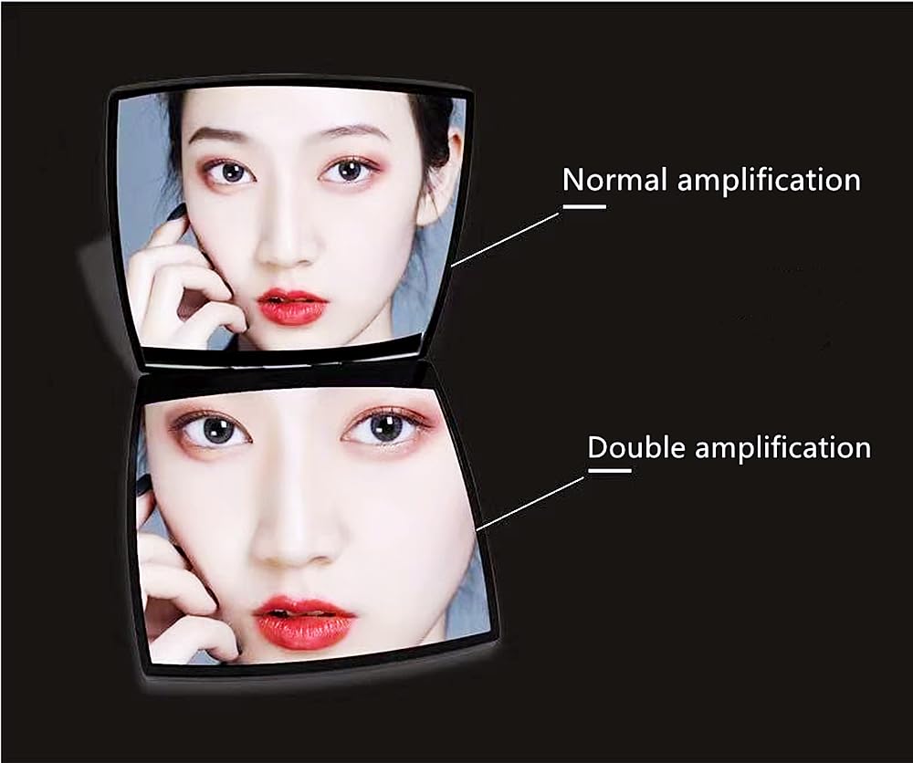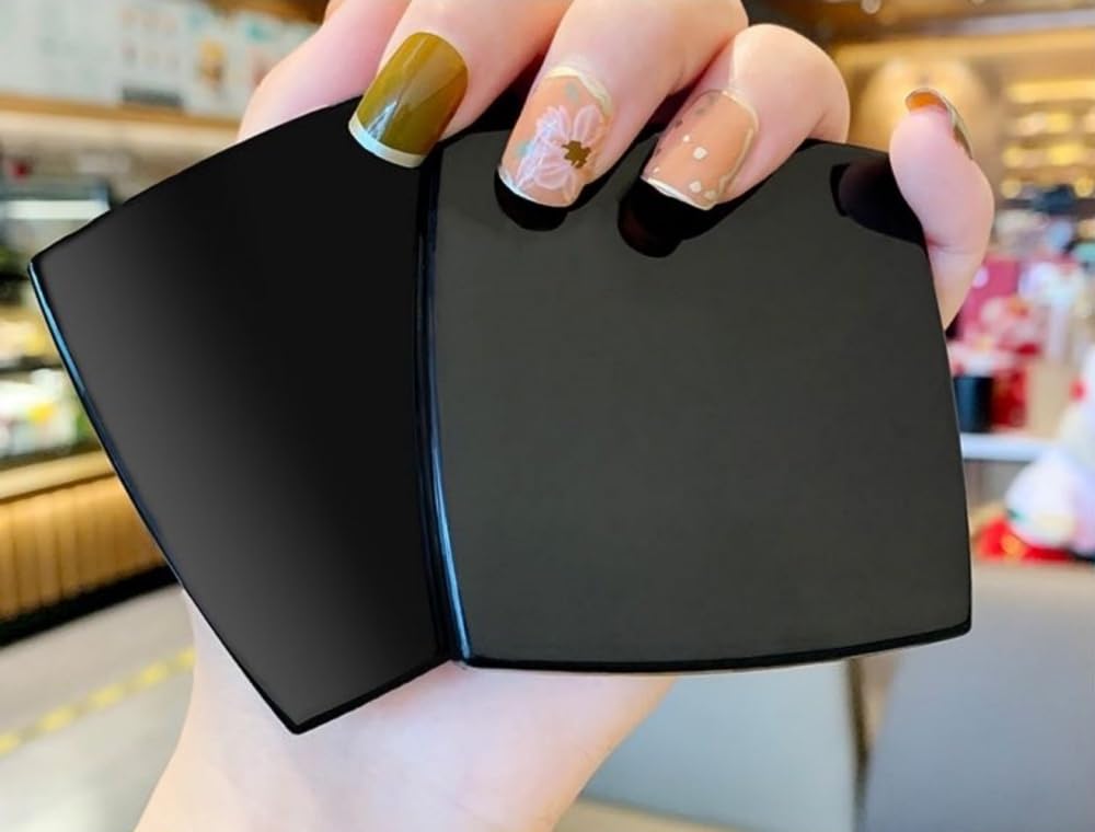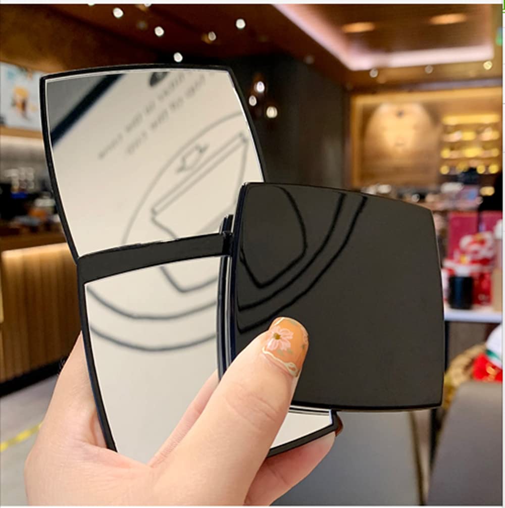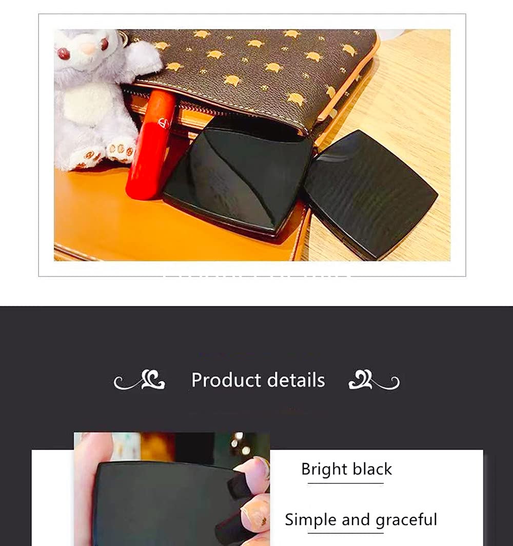 2 Pcs Fashion Compact Cosmetic Mirror, Elegant Compact Purses Makeup Mirror, Small Compact Mirror 2 x 1 Magnification, Square, Perfect for Purses - Travel, Black