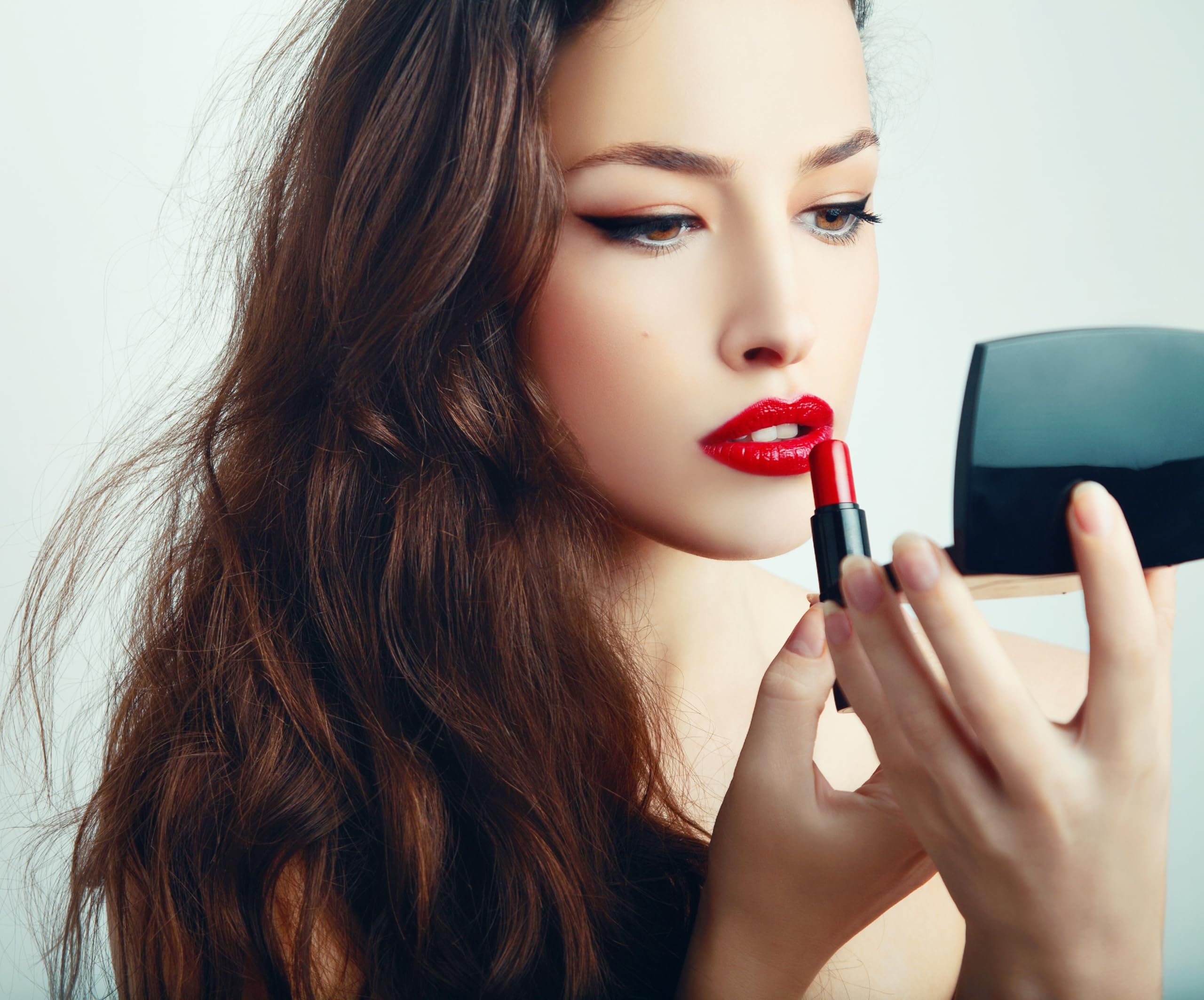 The 2x MAGNIFYING compact mirror for applying makeup or closeup eyebrow tweezing;
