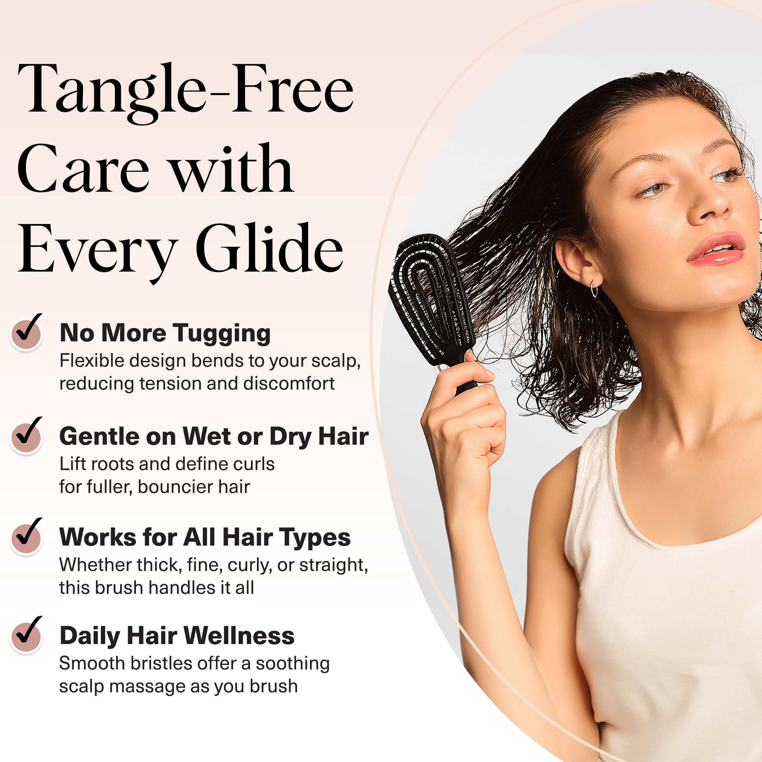 GENTLER ON HAIR, LESS BREAKAGE: This flexible detangling brush features a bendable frame that adapts to the natural shape of your head for a smoother brushing experience. By moving with your scalp instead of against it, the brush minimizes snapping, tugging, and split ends while working through tangles. A must-have detangler brush for healthier strands—and a perfect size for holiday stocking stuffers.
