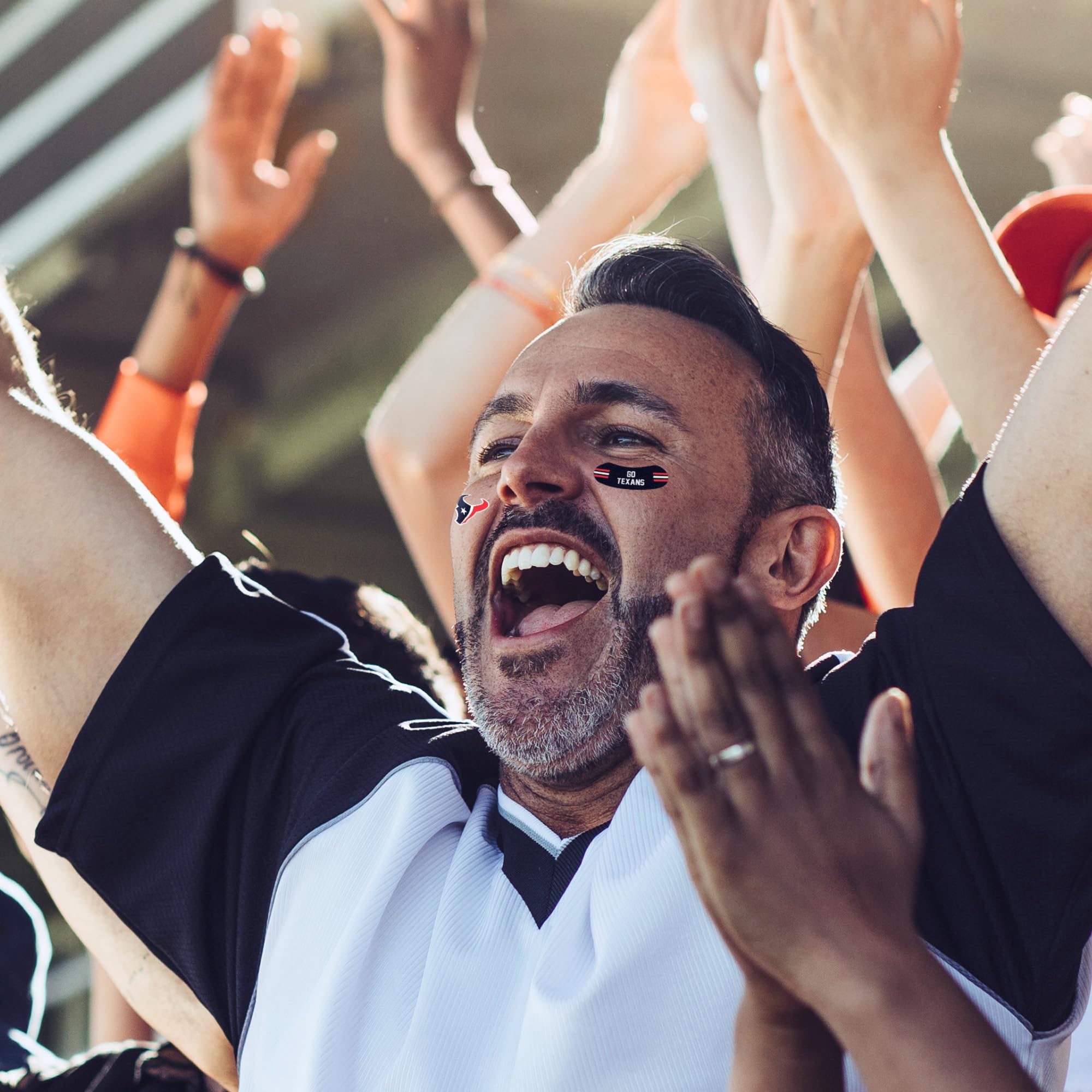 No matter where you go, everyone sees your face. It's inevitable. So why not go to that house party or the big game with your face just as decorated as the rest of you? The Peel and Stick Tattoos Set by Rico Industries includes 8 small tattoos that are decorated with bold and vibrant team colored graphics. They are printed on 3M hypoallergenic tape and no water is needed to apply, making for an easy peel and stick! Showing team pride has never been so easy and fun!