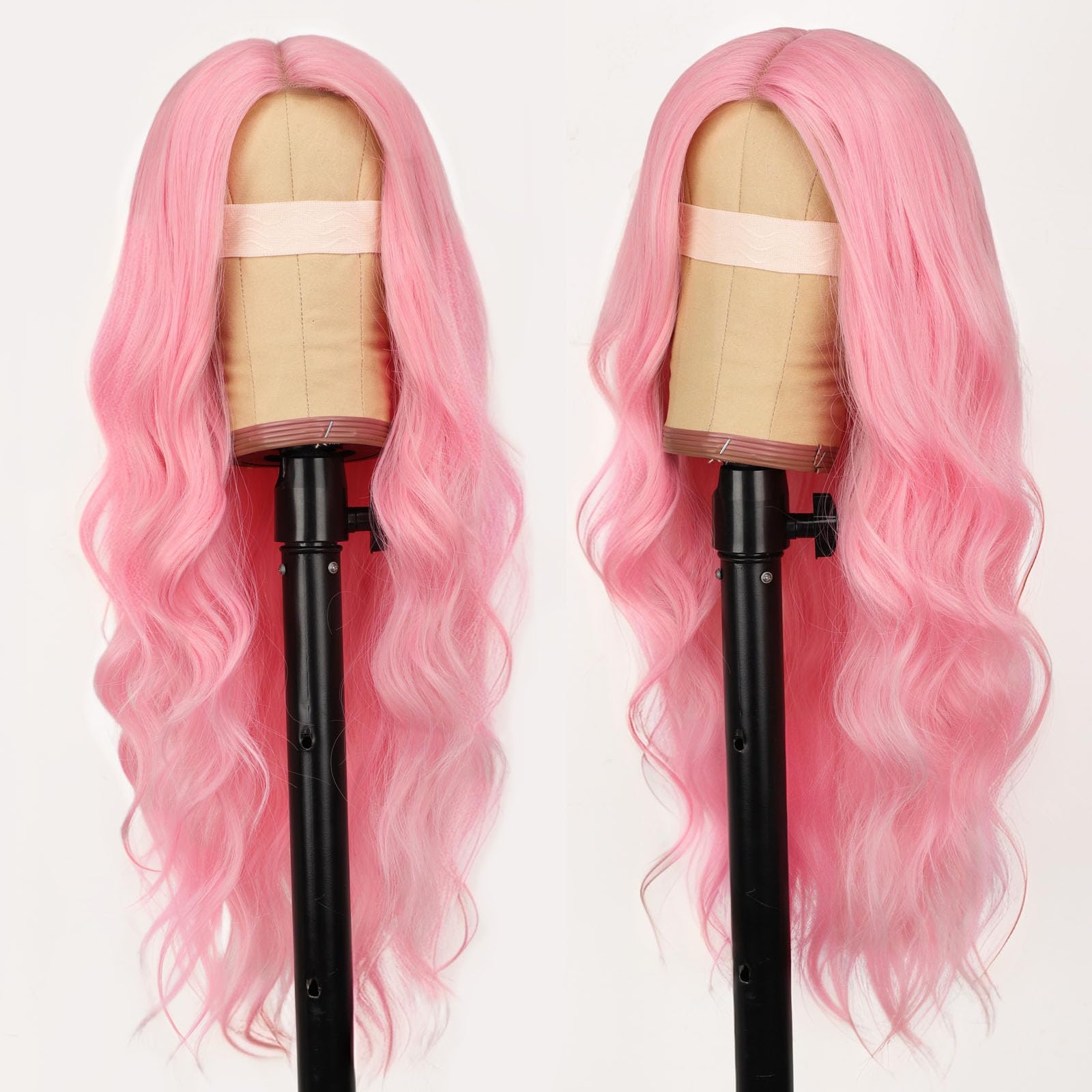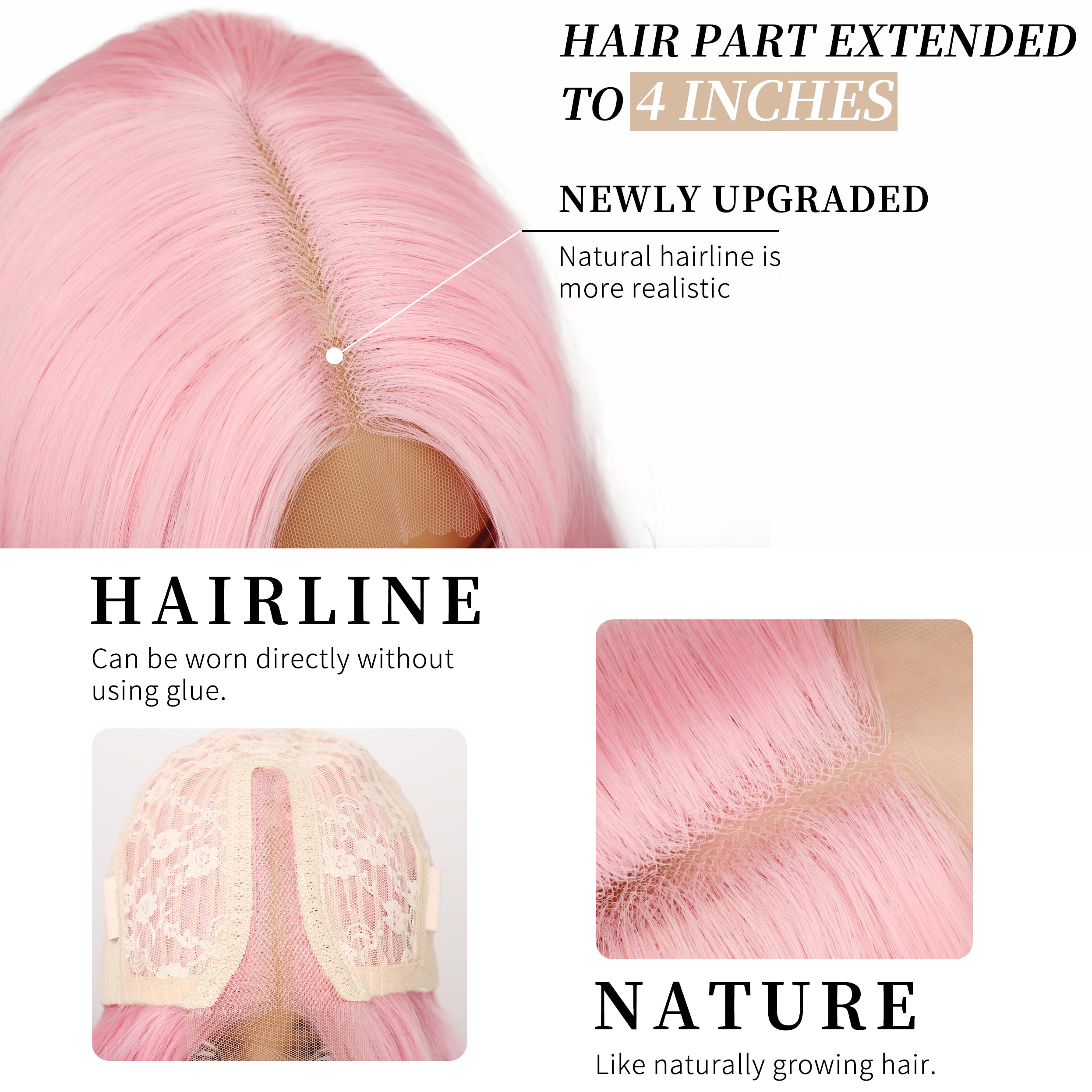 【Wig cap design】Our pink wig for women, The inner net is soft, thin and elastic, comfortable to wear, and the adjustment belt design is suitable for all kinds of head circumference.