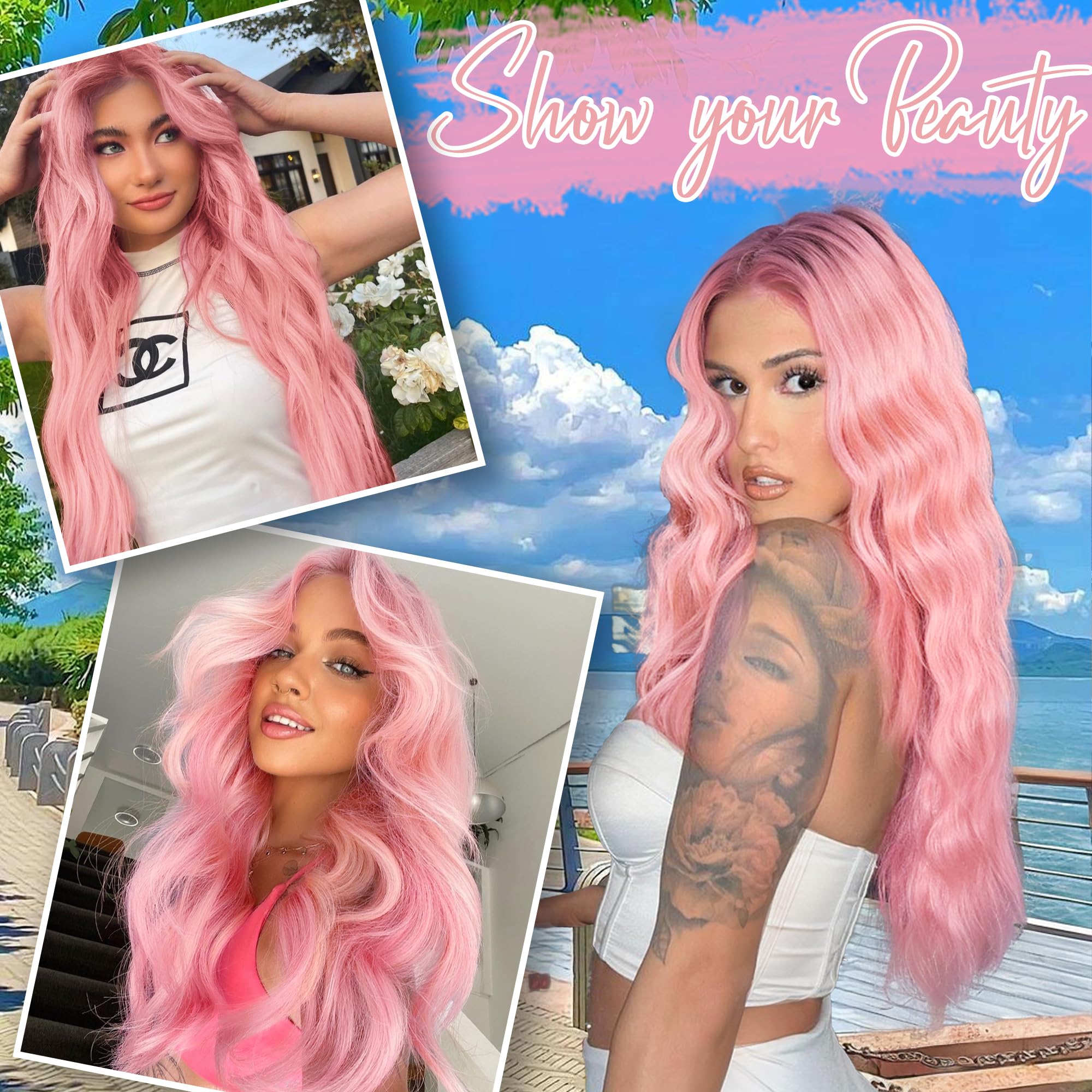 【Applicable occasion】Our pink wavy wig is suitable for a variety of styles of women to wear, of course, daily wear in life, dating, work, travel, role play, parties, weddings, etc., is also a very suitable choice.