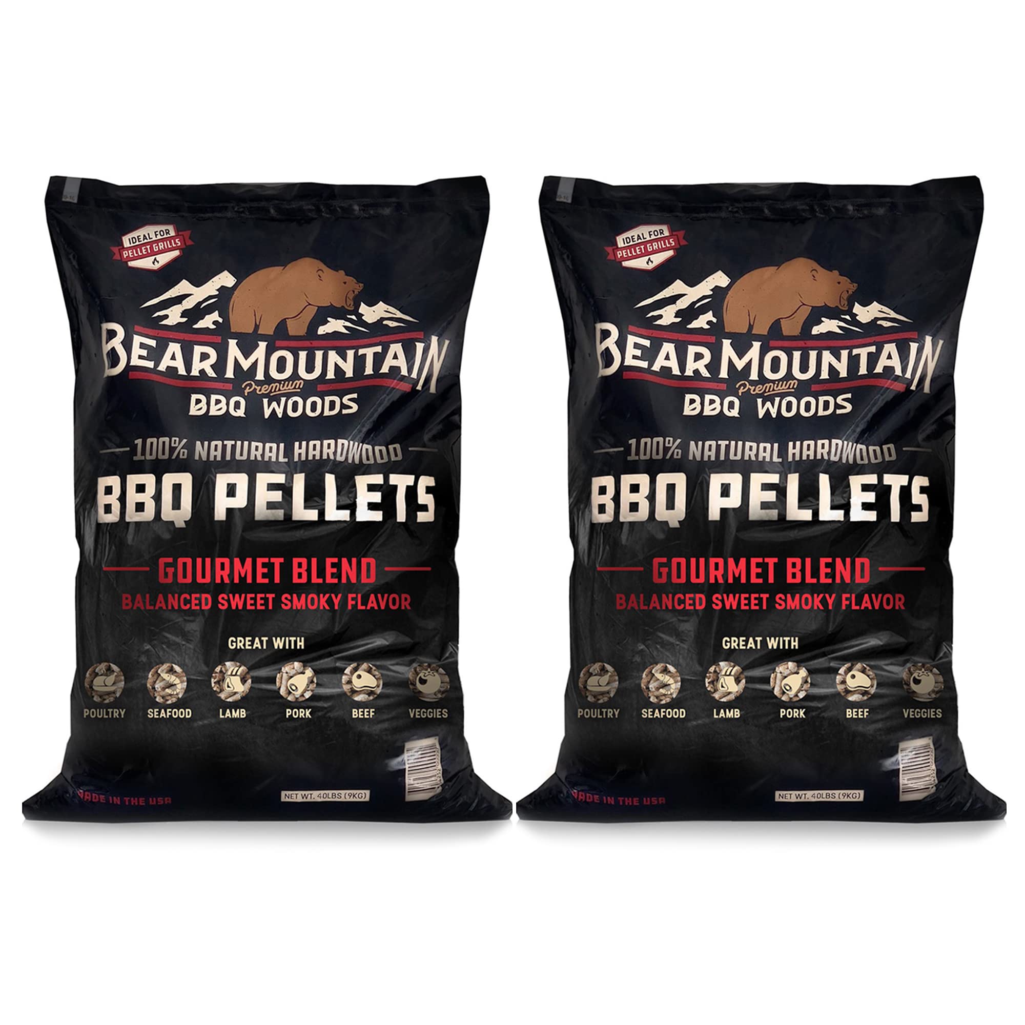 Bear Mountain 2 Pack BBQ Pellets, All Natural Low Moisture Hardwood, 40 Pound