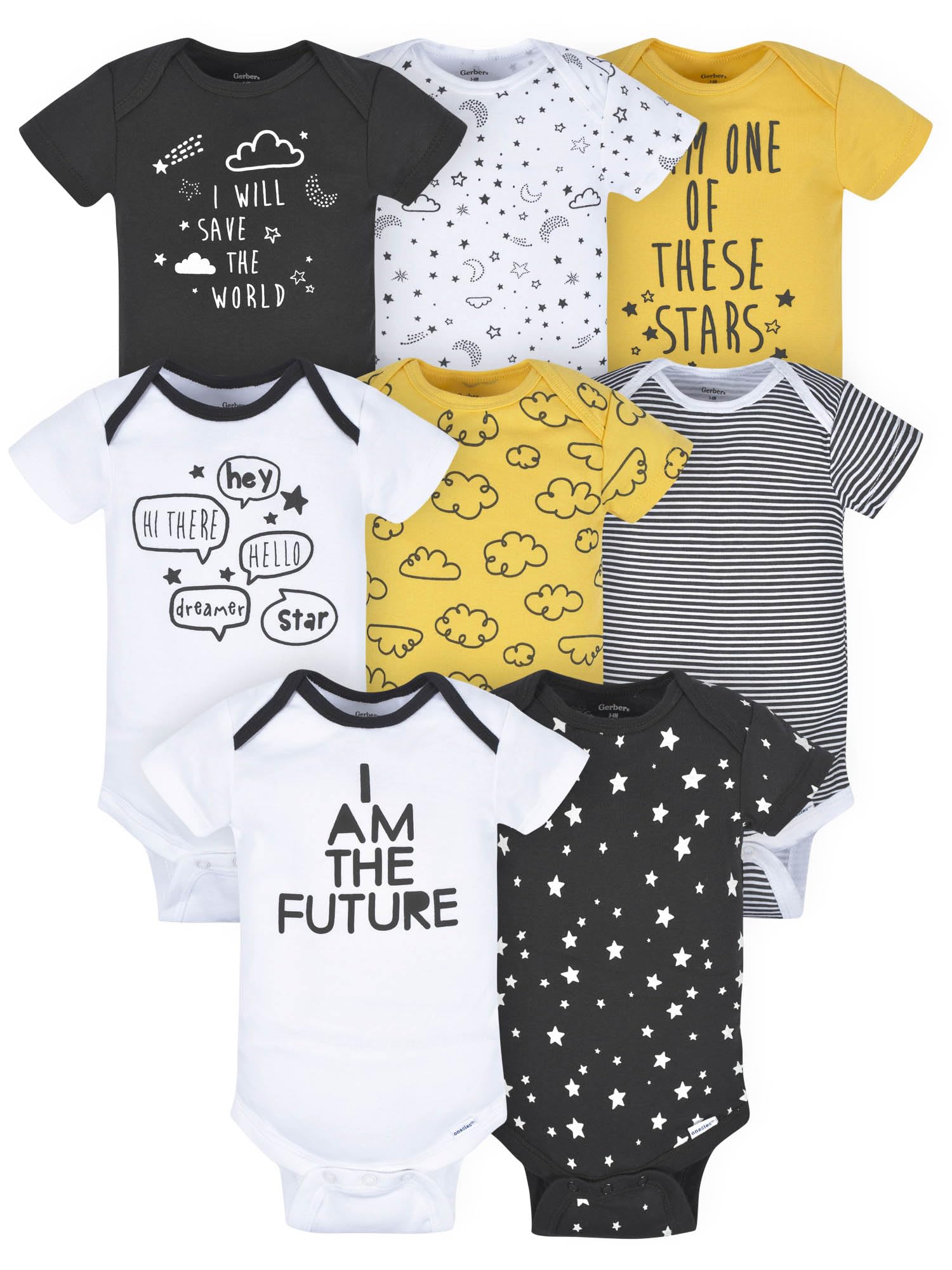 Gerber Baby 8-Pack Short Sleeve Onesies Bodysuits, Star, Newborn