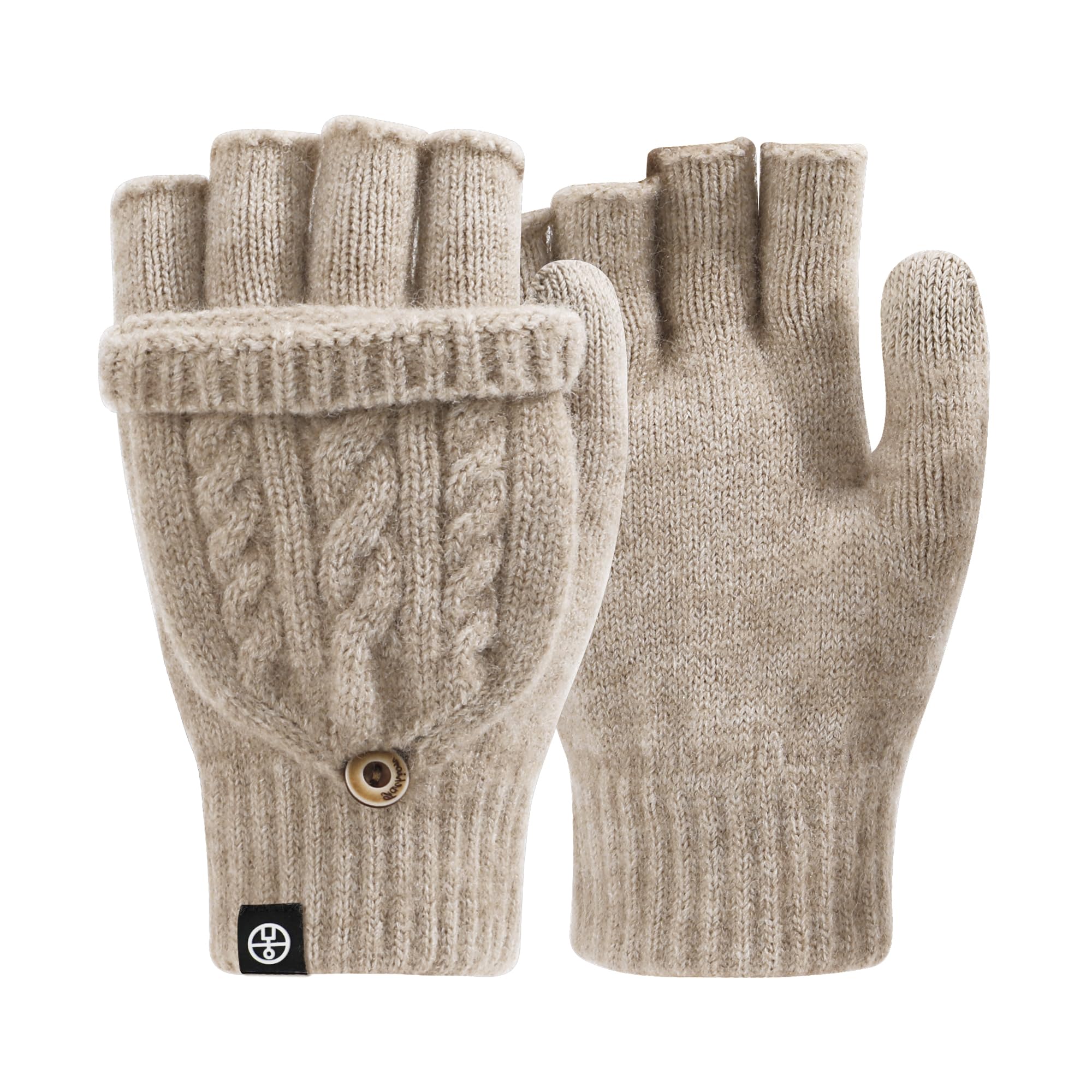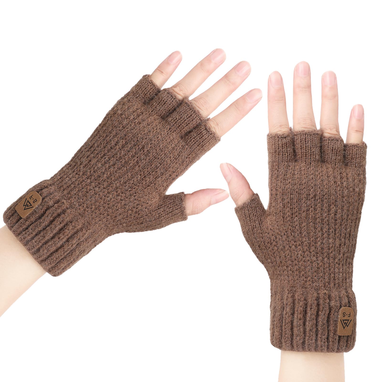 fauson Winter Gloves for Women Brown 1 Pair Fingerless