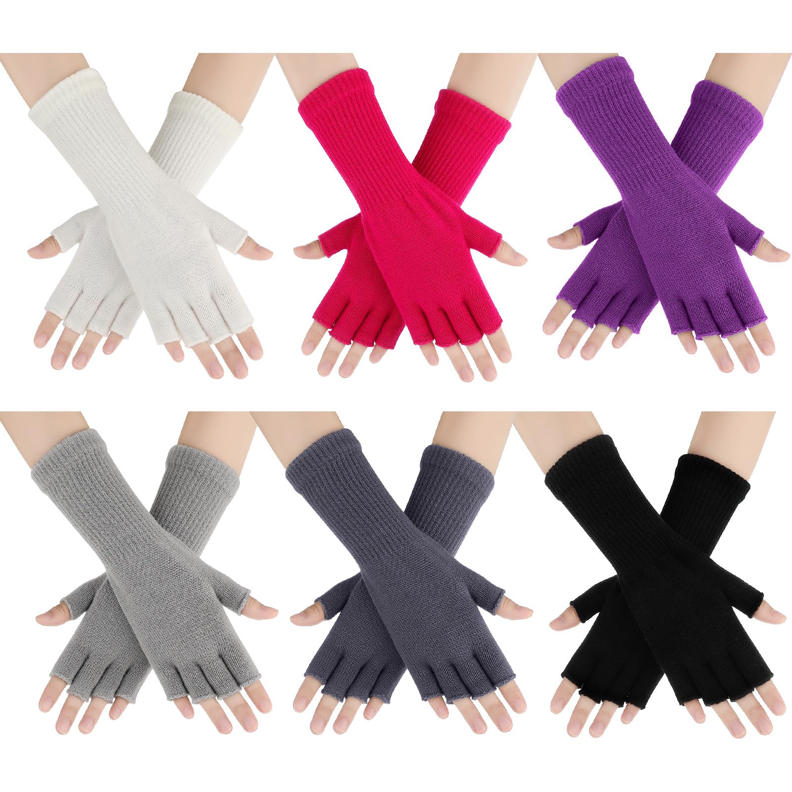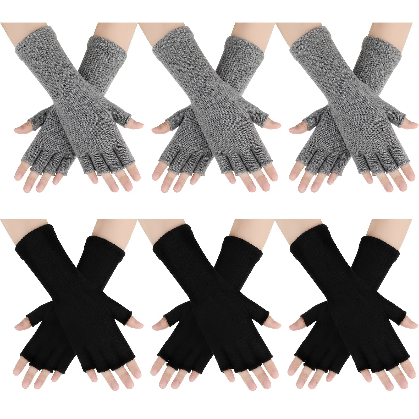 Sumfox 3 Pairs Fingerless Knit Winter Stretchy Gloves