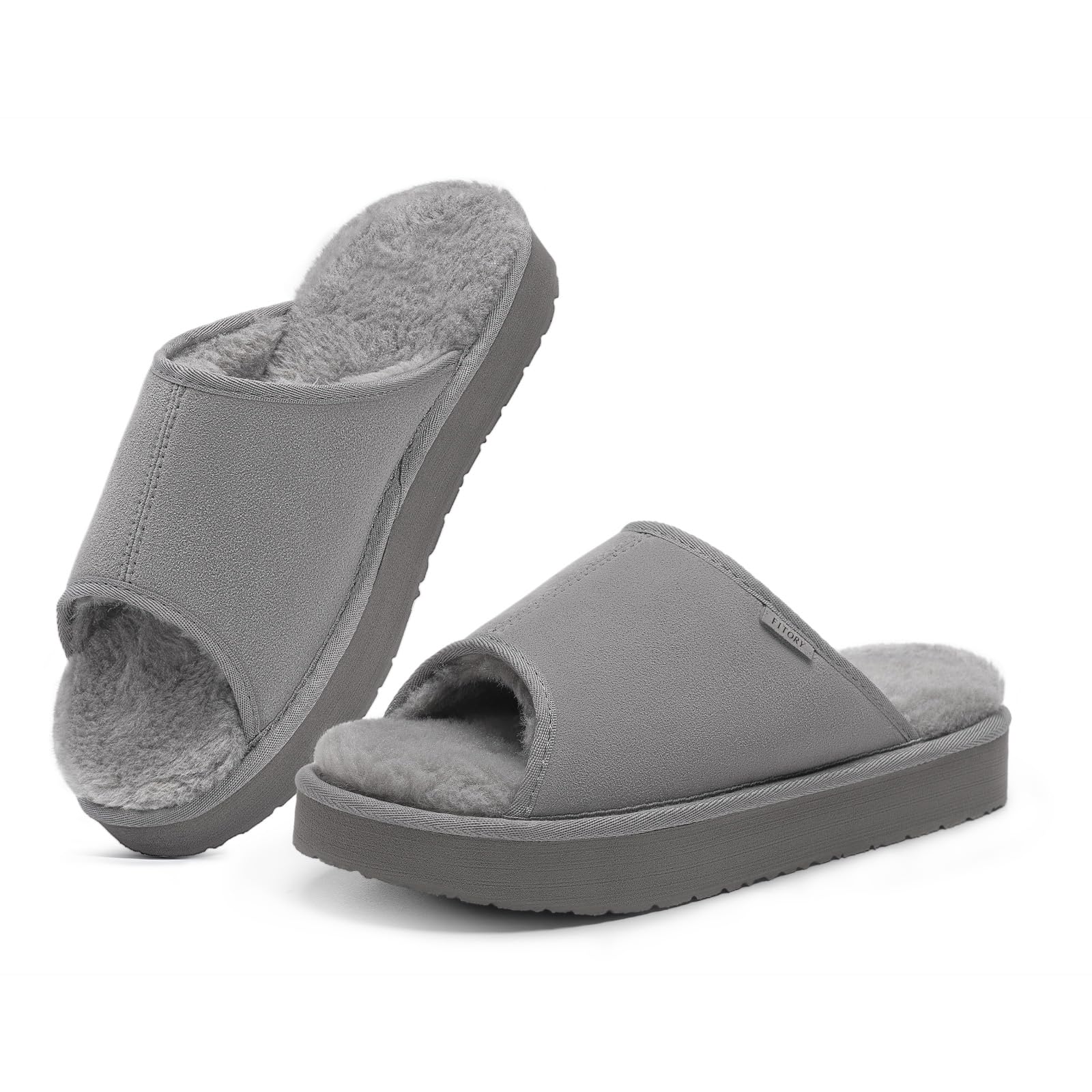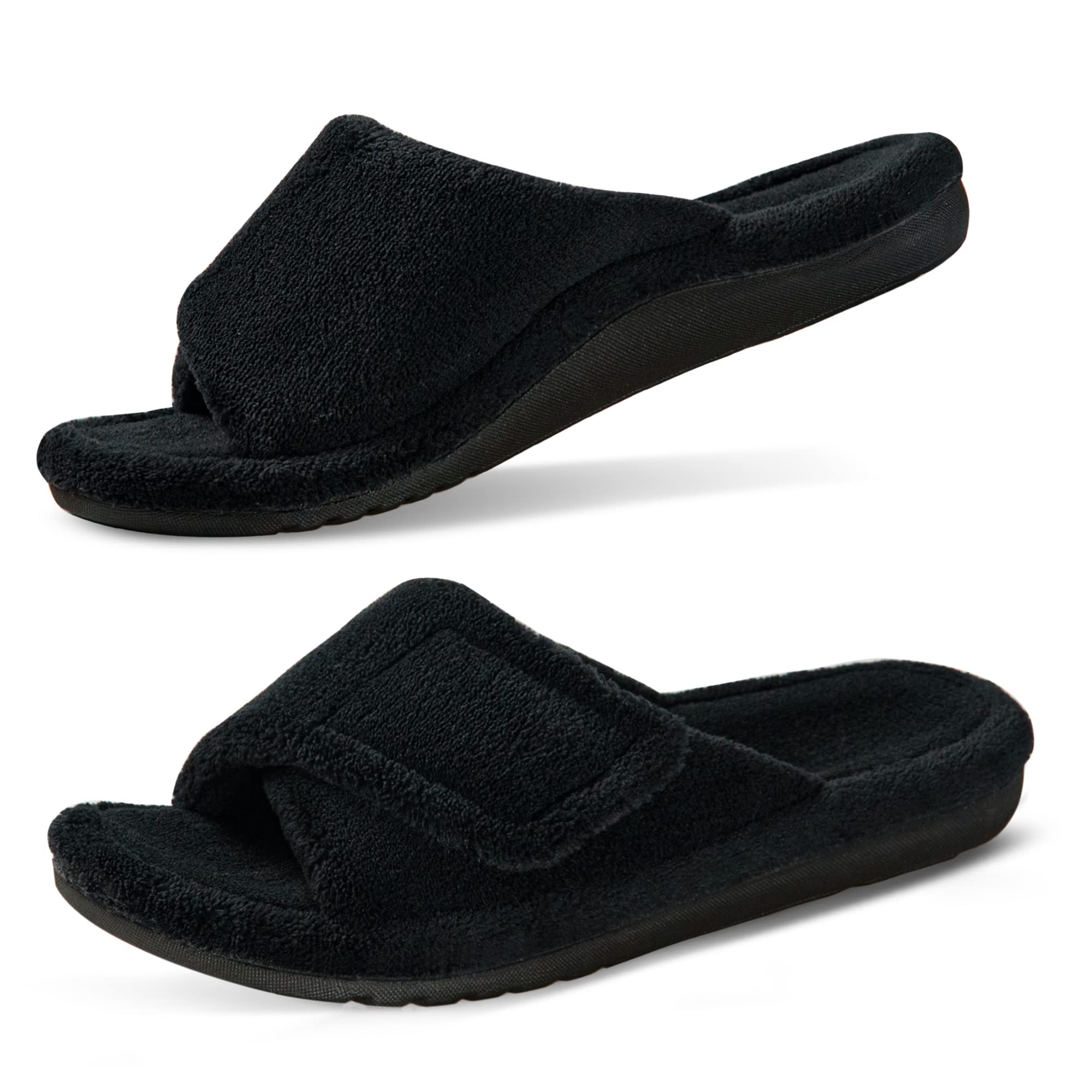 Orthofeet Women's Orthopedic Black Faux Fur Lined Charlotte Slippers, Size 9.5