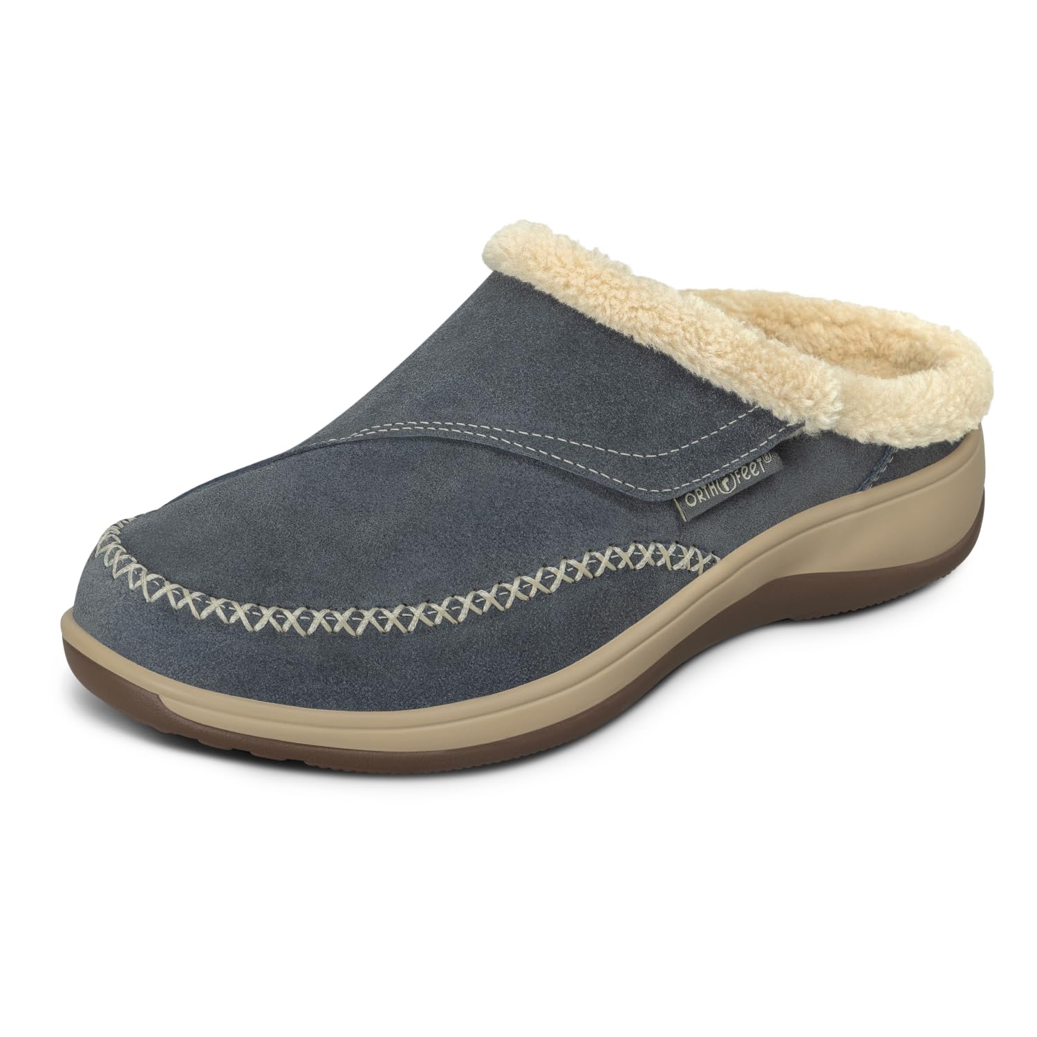 Orthofeet Women's Orthopedic Faux Fur Lined Charlotte Slippers, Grey, Size 9