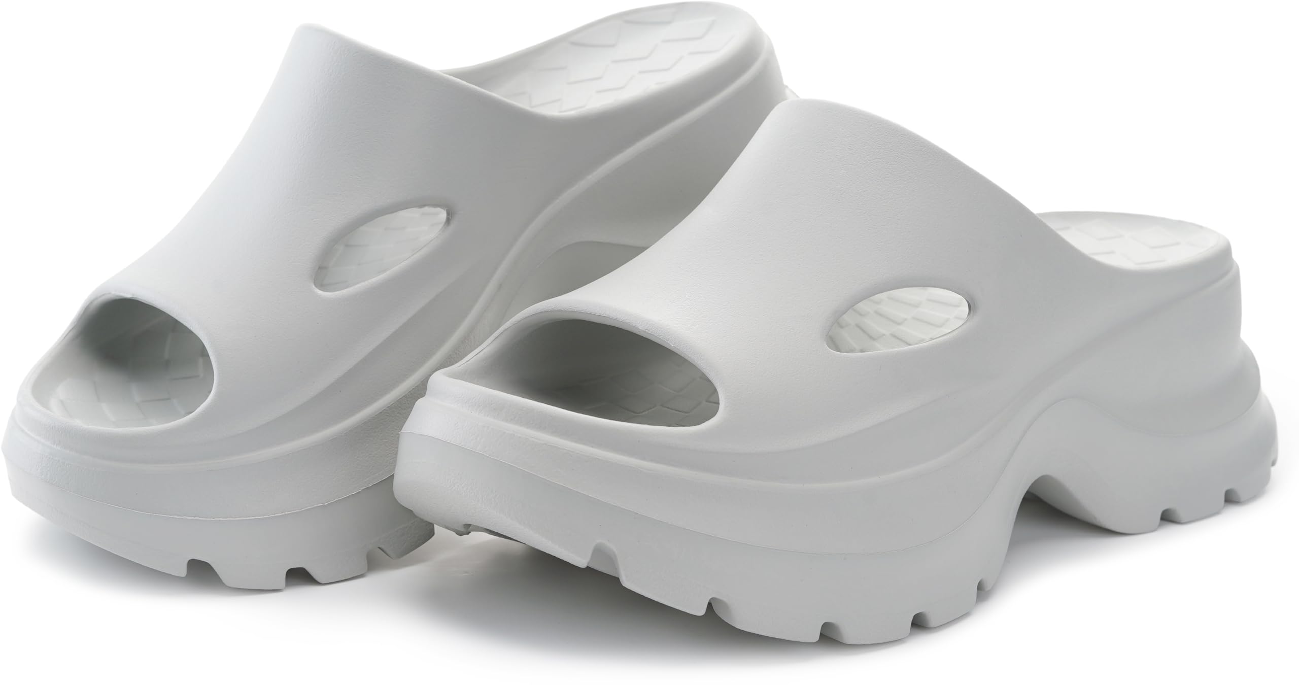 Crocs Women's Classic Platform Slide | Platform Sandals, Bone, 10 Women