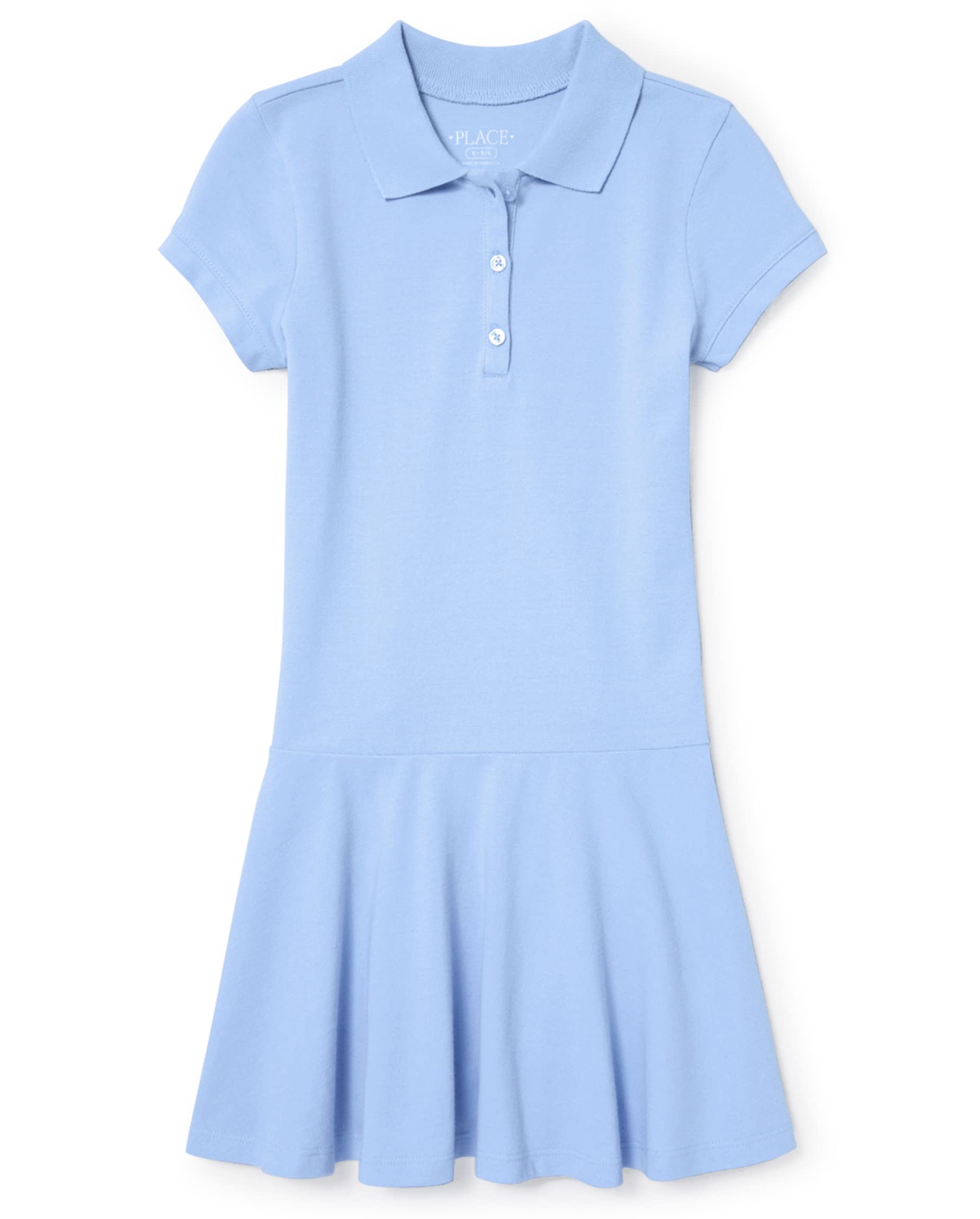 The Children's Place,Short Sleeve Ruffle Polo Dress,Daybreak,Large (10/12)