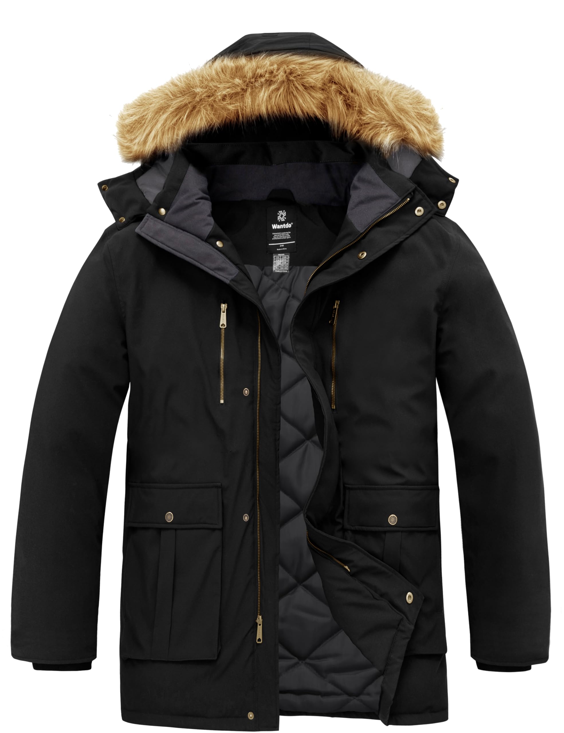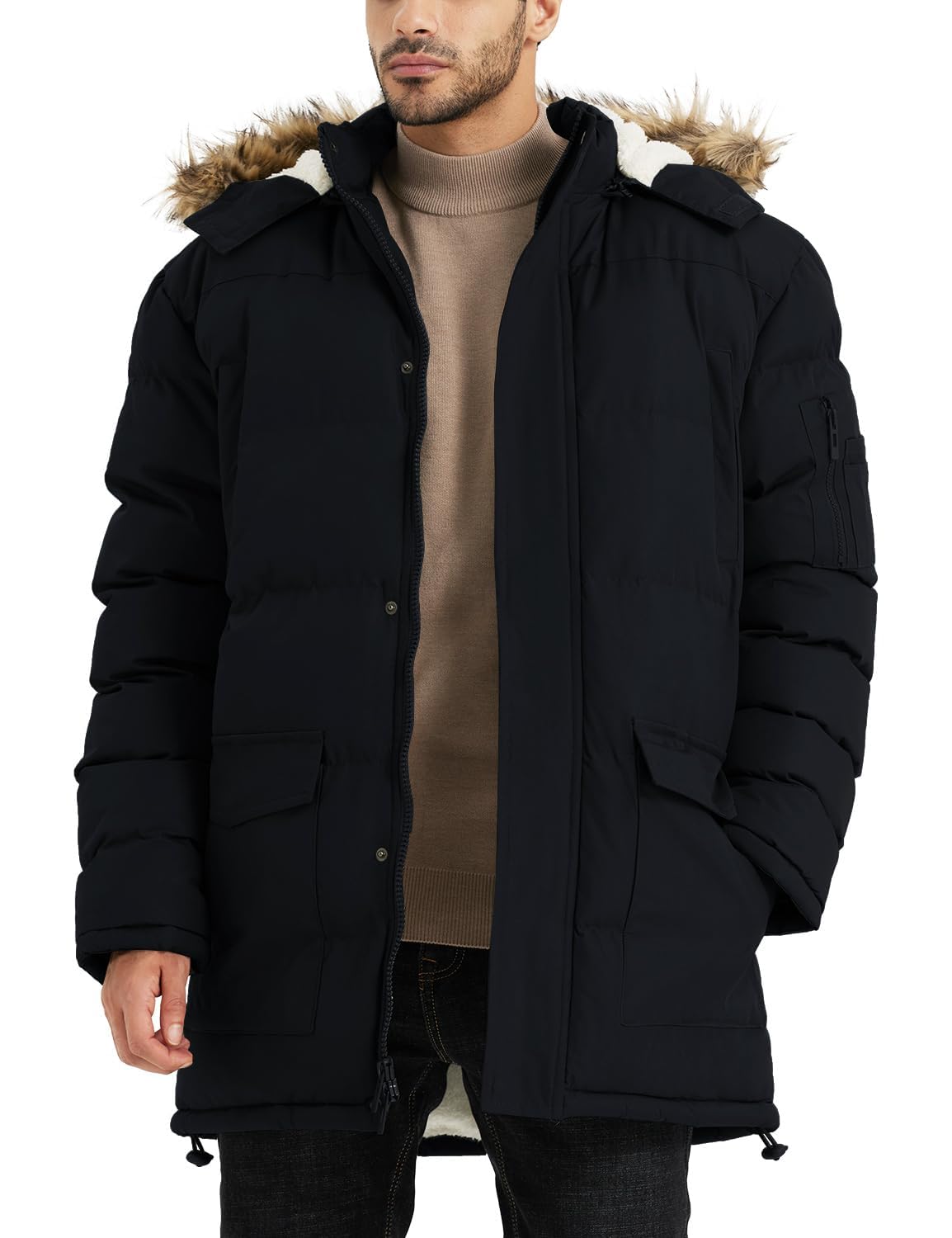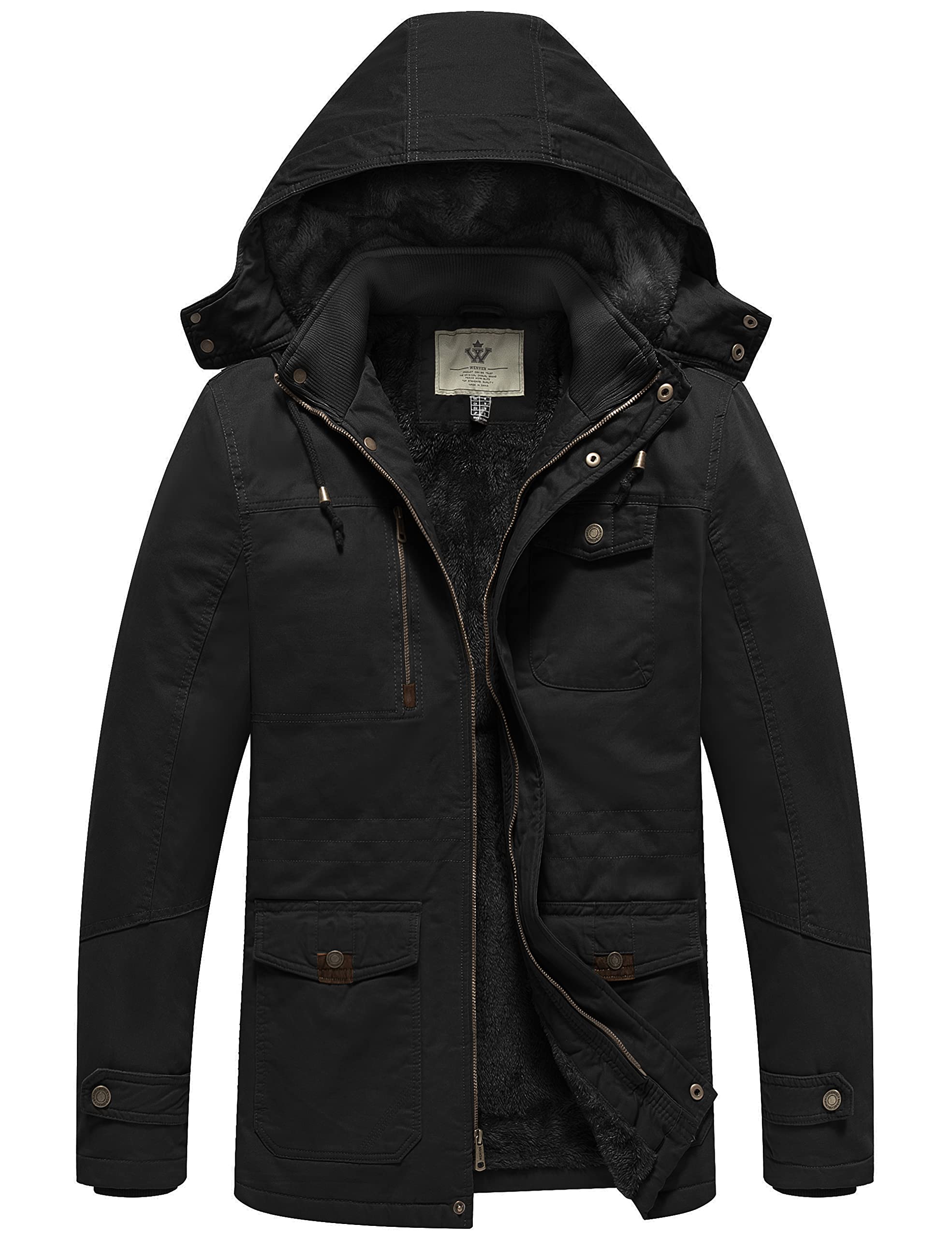 WenVen Men's Winter Fleece Military Coats Parka Jackets Outerwear Black M