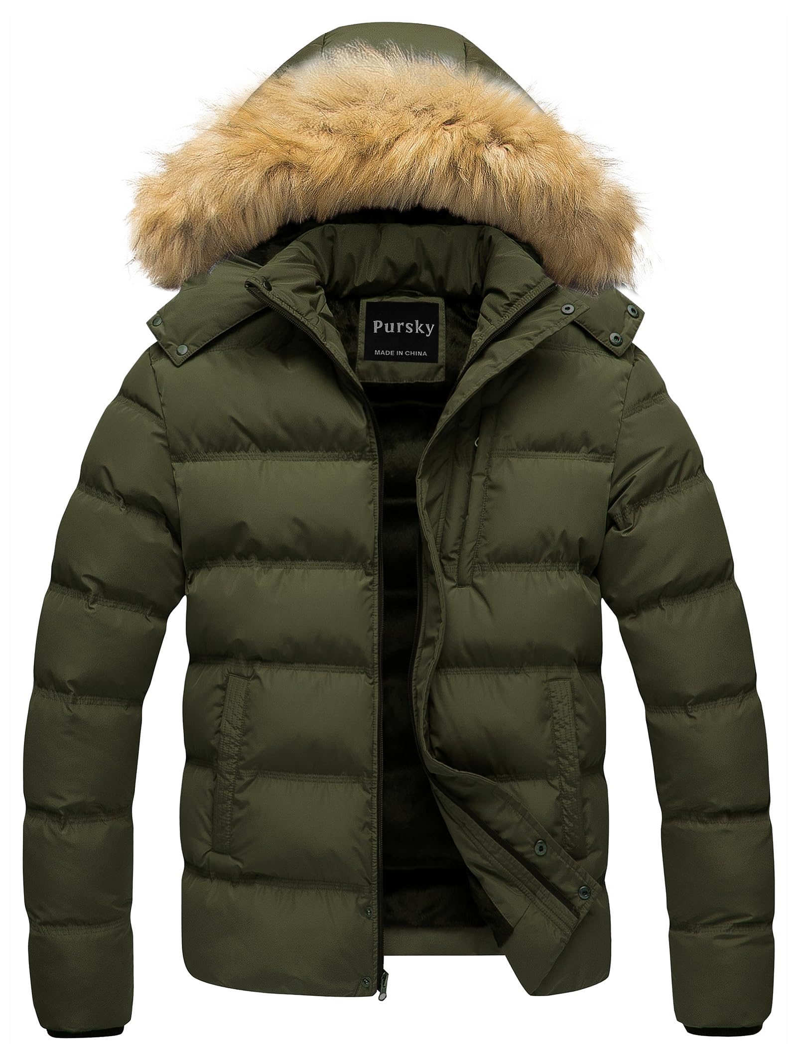 WenVen Men's Winter Coat Puffer Parka Jacket with Fur Hood (Army Green, XXL)