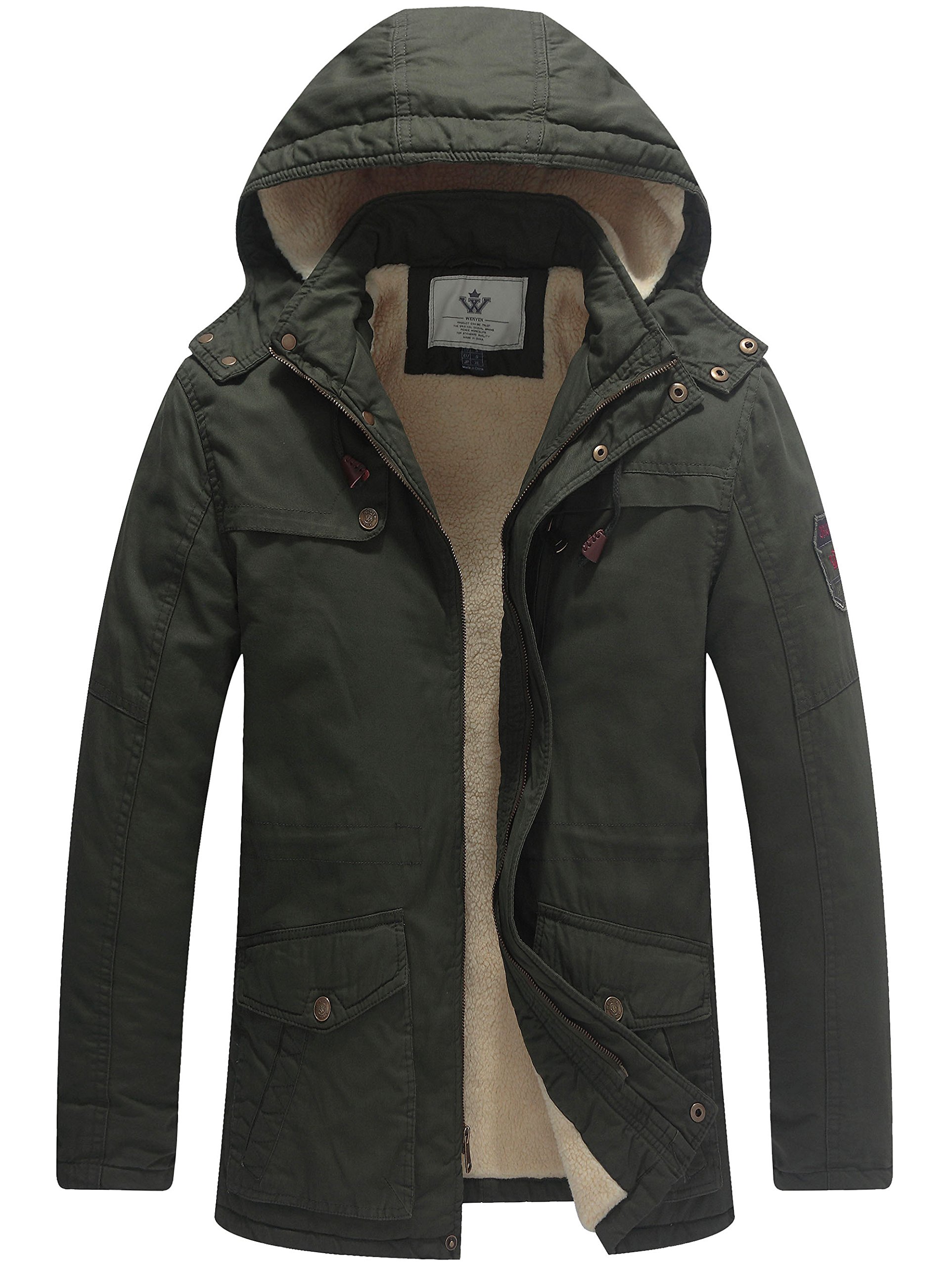 WenVen Men's Winter Warm Cotton Parka Jacket Army Fatigue Coat (Army Green,M)